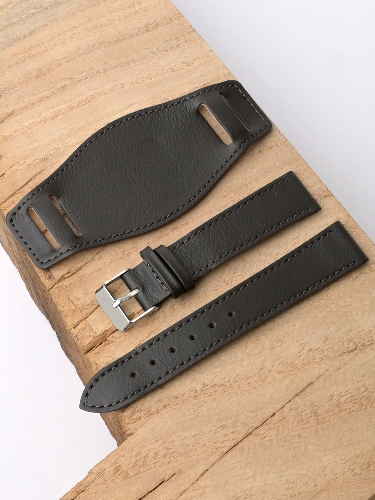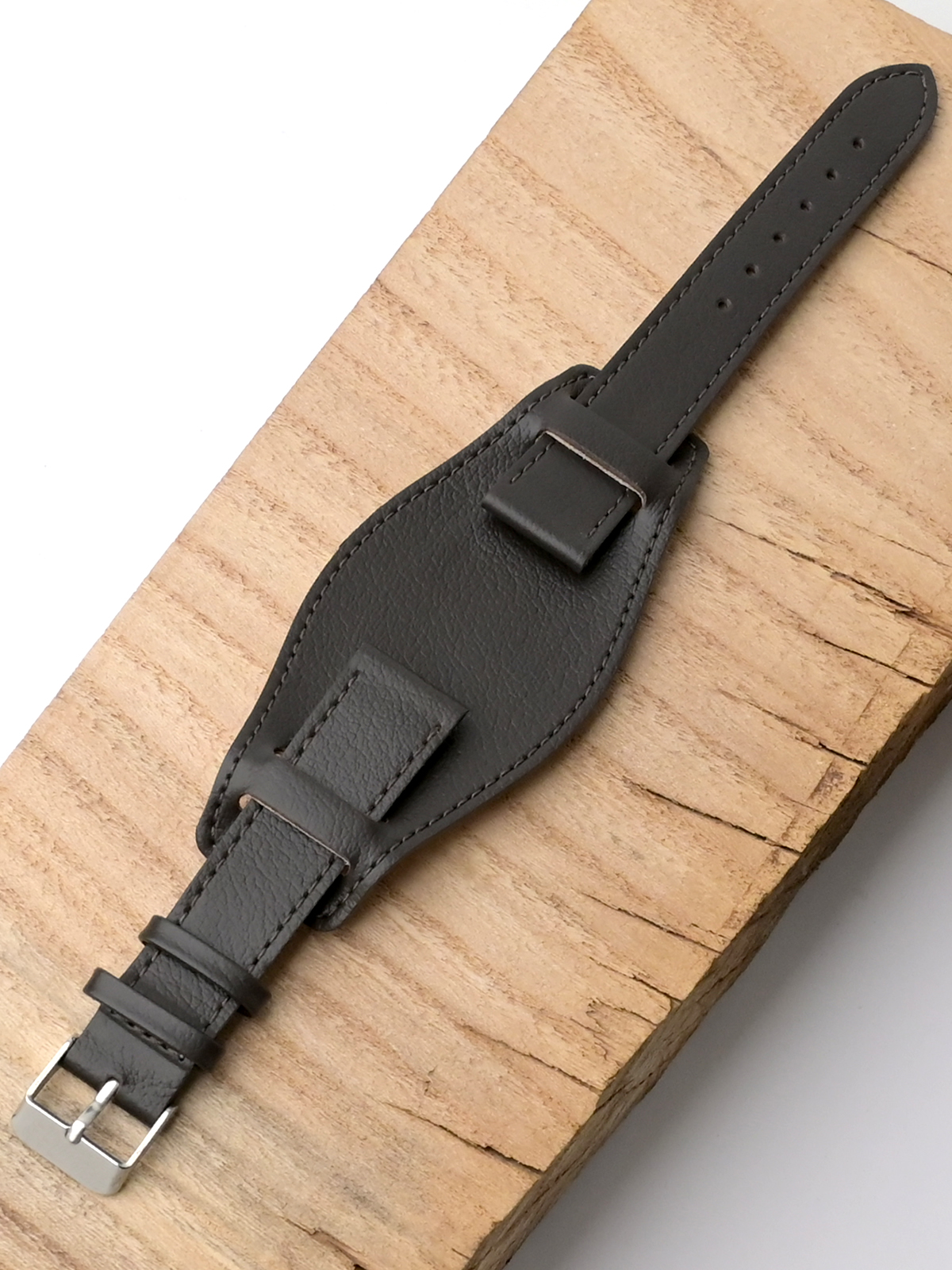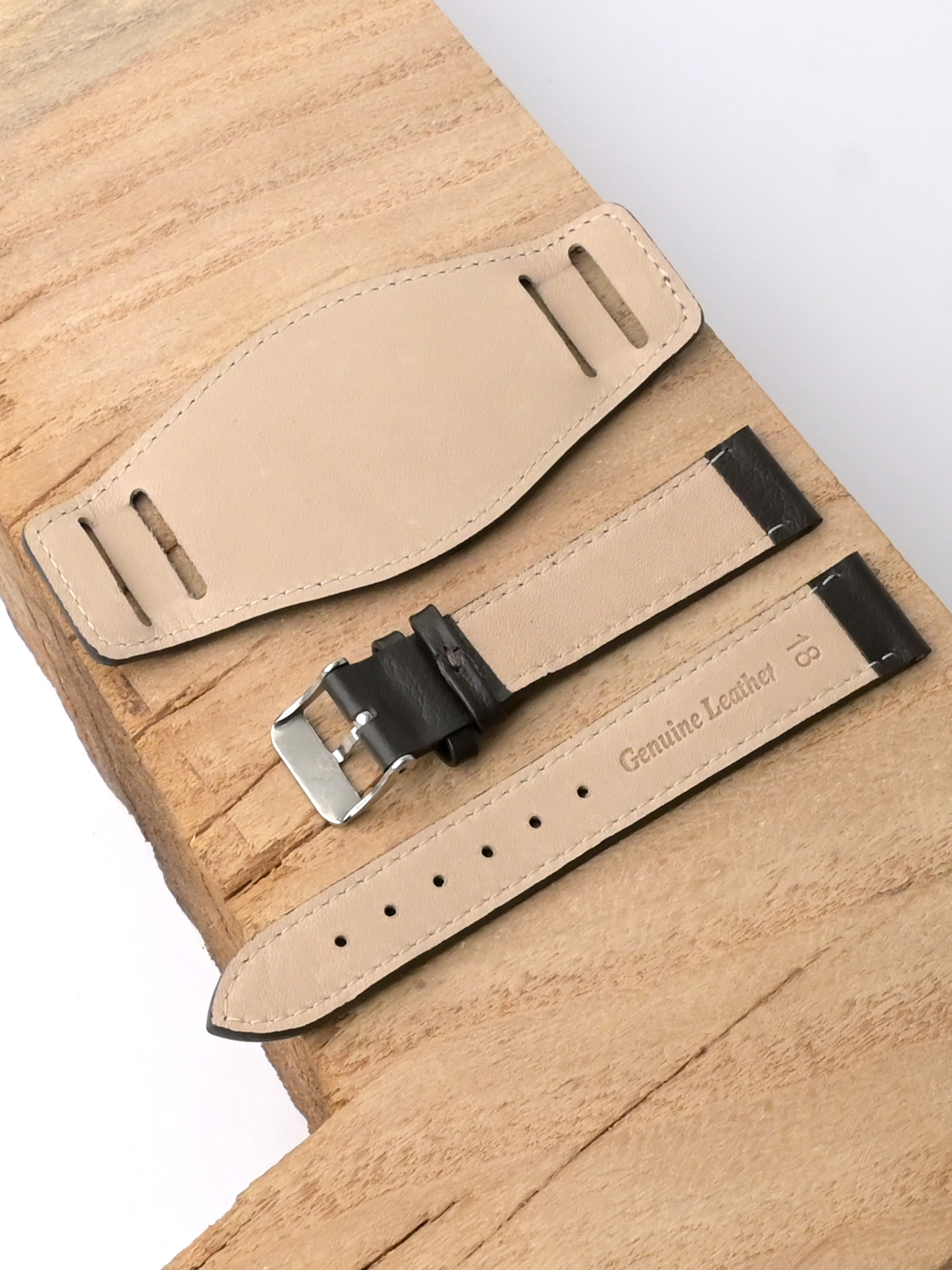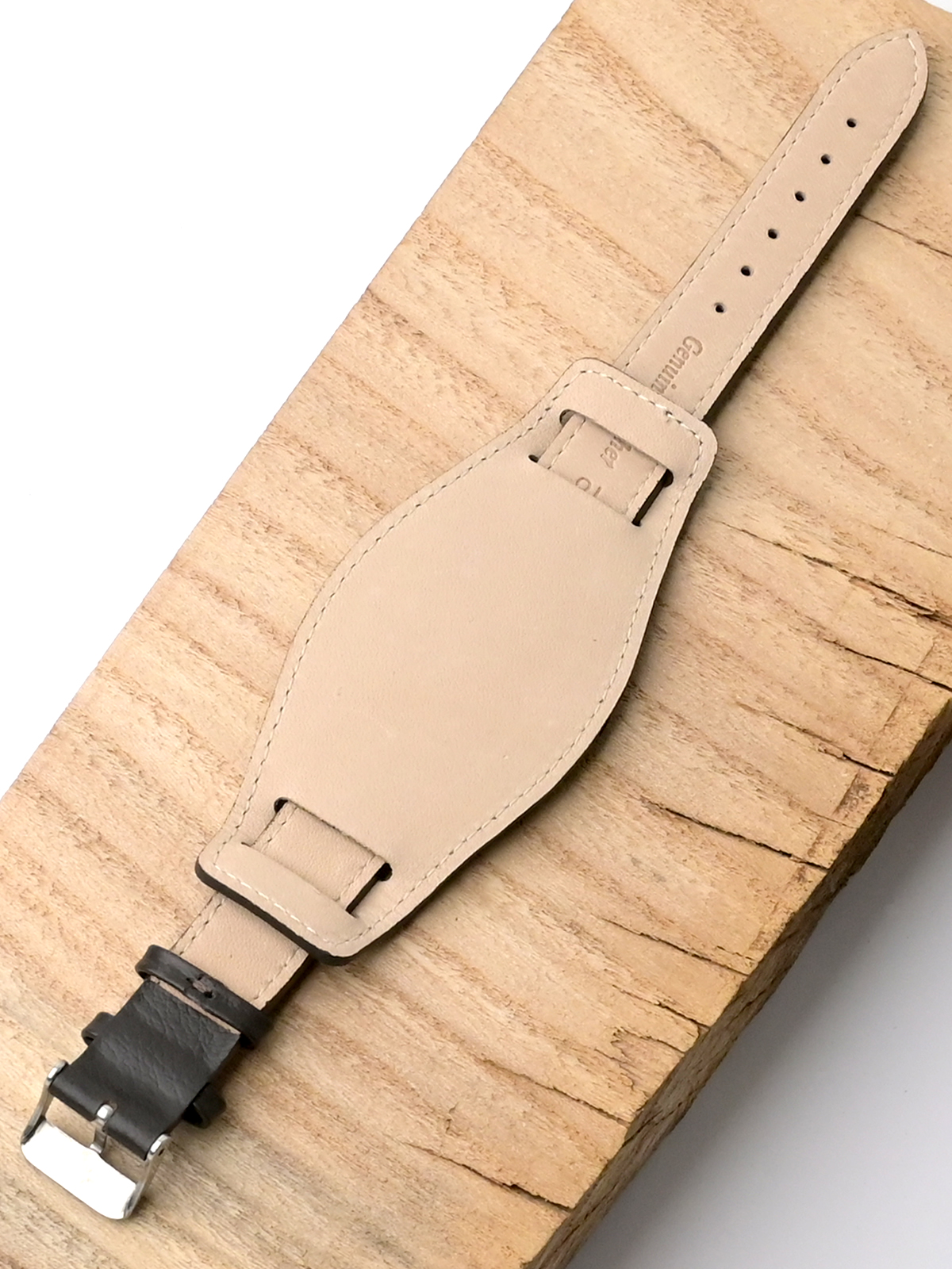 Ремешок из натуральной кожи для наручных часов с напульсником. Материал: высококачественная кожа теленка. Ширина крепления: 18 мм. Ширина пряжки: 16 мм. Длина большей части: 115 мм. Длина меньшей части без застежки: 75 мм. Ширина напульсника 45 мм, длина 100 мм. Пряжка из полированной нержавеющей стали.
