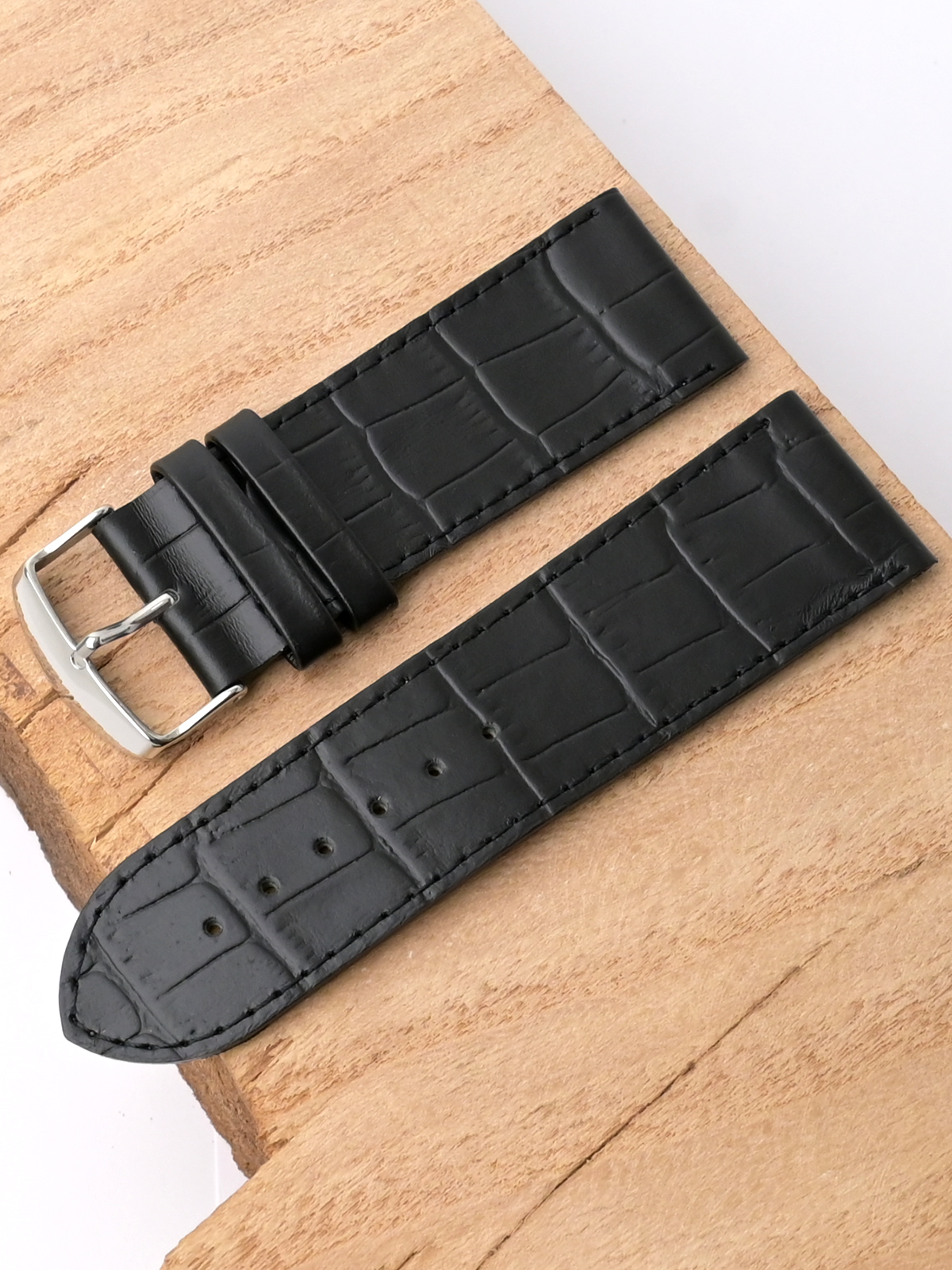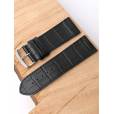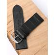 Ремешок из натуральной кожи черного цвета для наручных часов. Материал: высококачественная кожа теленка. Ширина крепления: 28 мм. Ширина пряжки: 26 мм. Длина большей части: 120 мм. Длина меньшей части без застежки: 80 мм. Пряжка из полированной нержавеющей стали.