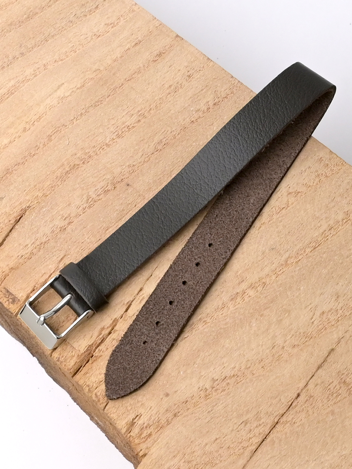 Сплошной ремешок из натуральной кожи коричневого цвета для наручных часов. Материал: высококачественная кожа теленка. Ширина ремешка на всем протяжении 14 мм. Ширина пряжки: 14 мм. Длина ремешка: 240 мм. Обхват запястья до 220 мм. Пряжка из полированной нержавеющей стали.