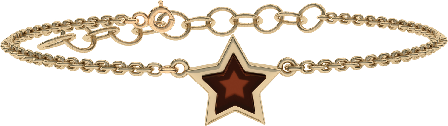Современный браслет из золоченого серебра 925 пробы, дополнен вставкой в виде звездочки, выполненной из натурального янтаря. Длина 14 см + 5 см (доп. звенья).