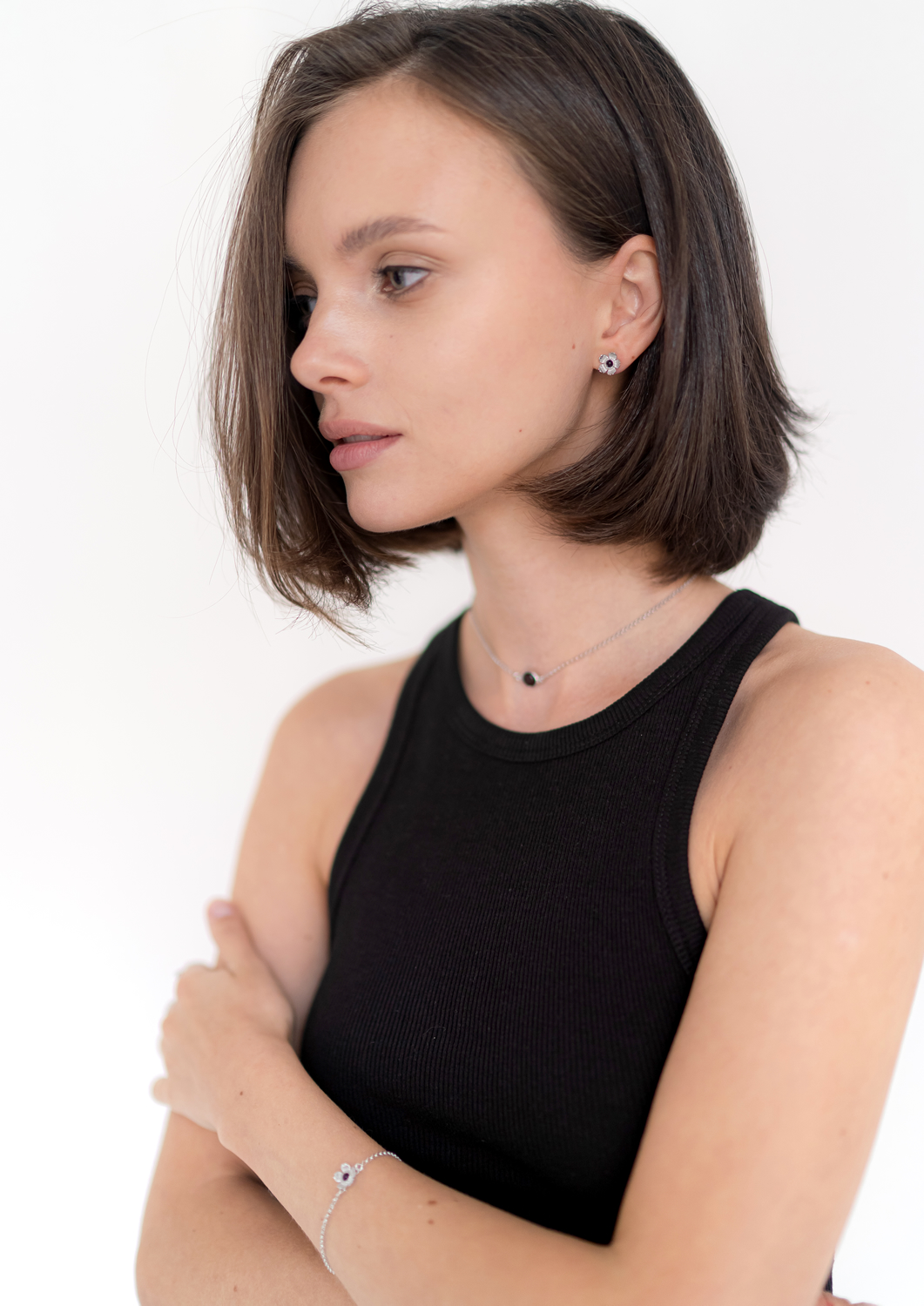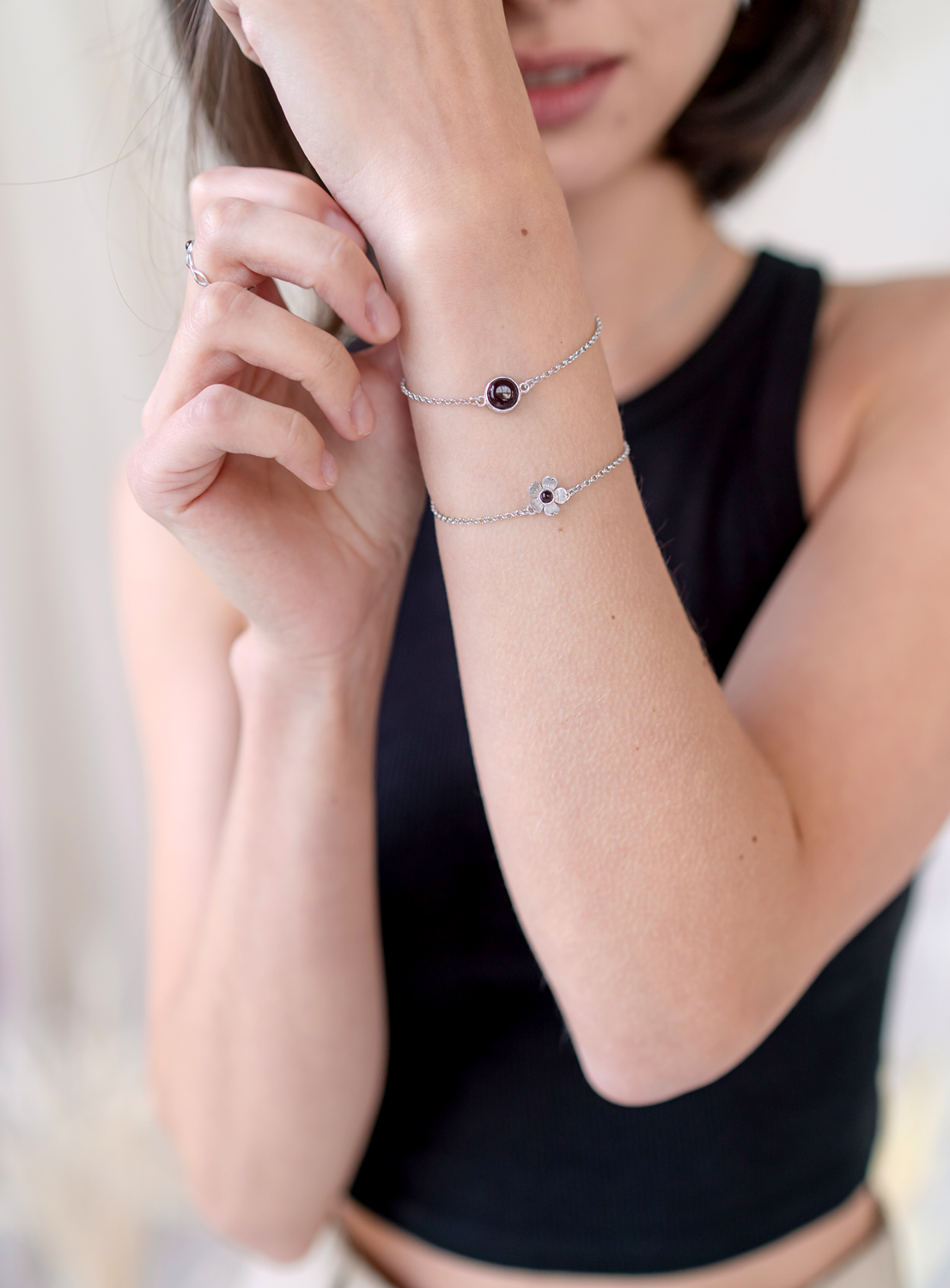 Современный браслет W20005RV из серебра 925 пробы с родированием. Украшен натуральным янтарем. Длина 15 см. + 5 см. дополнительные звенья.