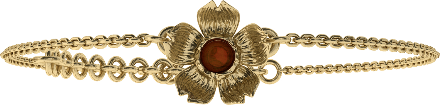 Современный браслет из золоченого серебра 925 пробы. Украшен натуральным янтарем. Длина 15 см. + 5 см. дополнительные звенья.