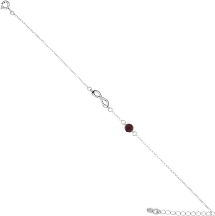 Стильный браслет из серебра 925 пробы с родированием. Украшен натуральным янтарем и знаком бесконечности.