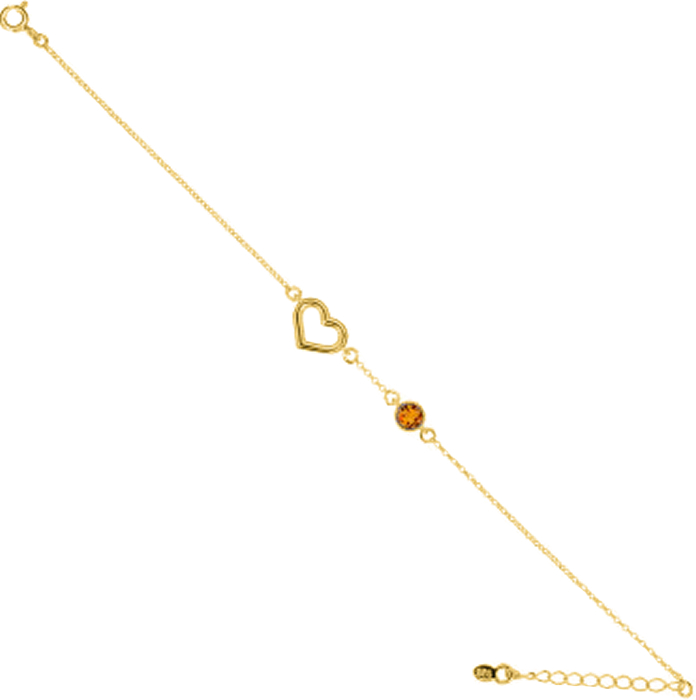 Стильный браслет из золоченого серебра 925 пробы. Украшен натуральным янтарем и сердечком.