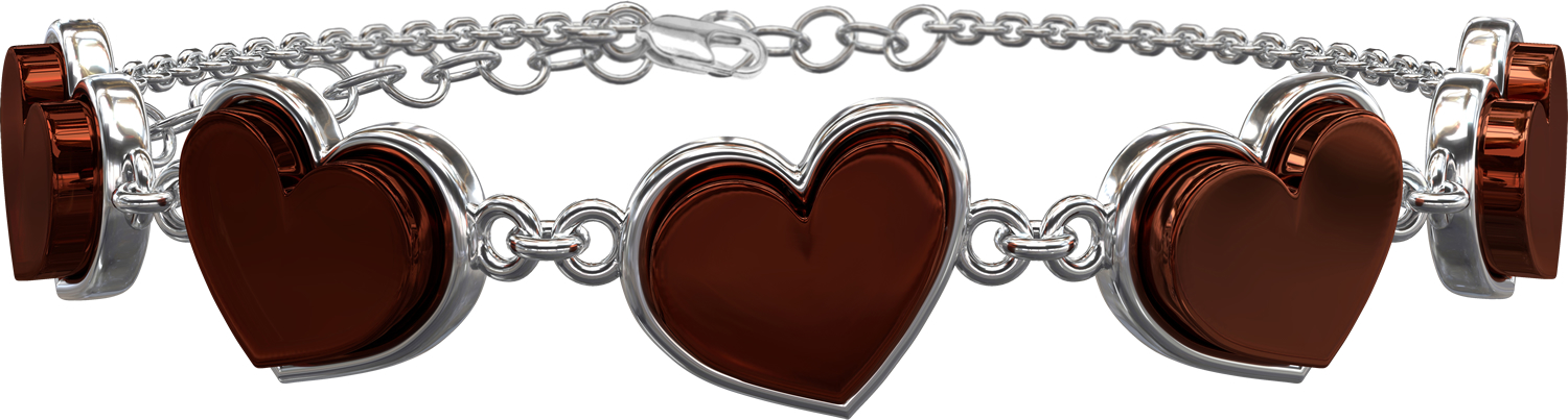 Минималистичный браслет из серебра 925 пробы с родированием. Украшен натуральным янтарем, выполненным в форме сердец. Длина 15 см. + 5 см. дополнительные звенья.