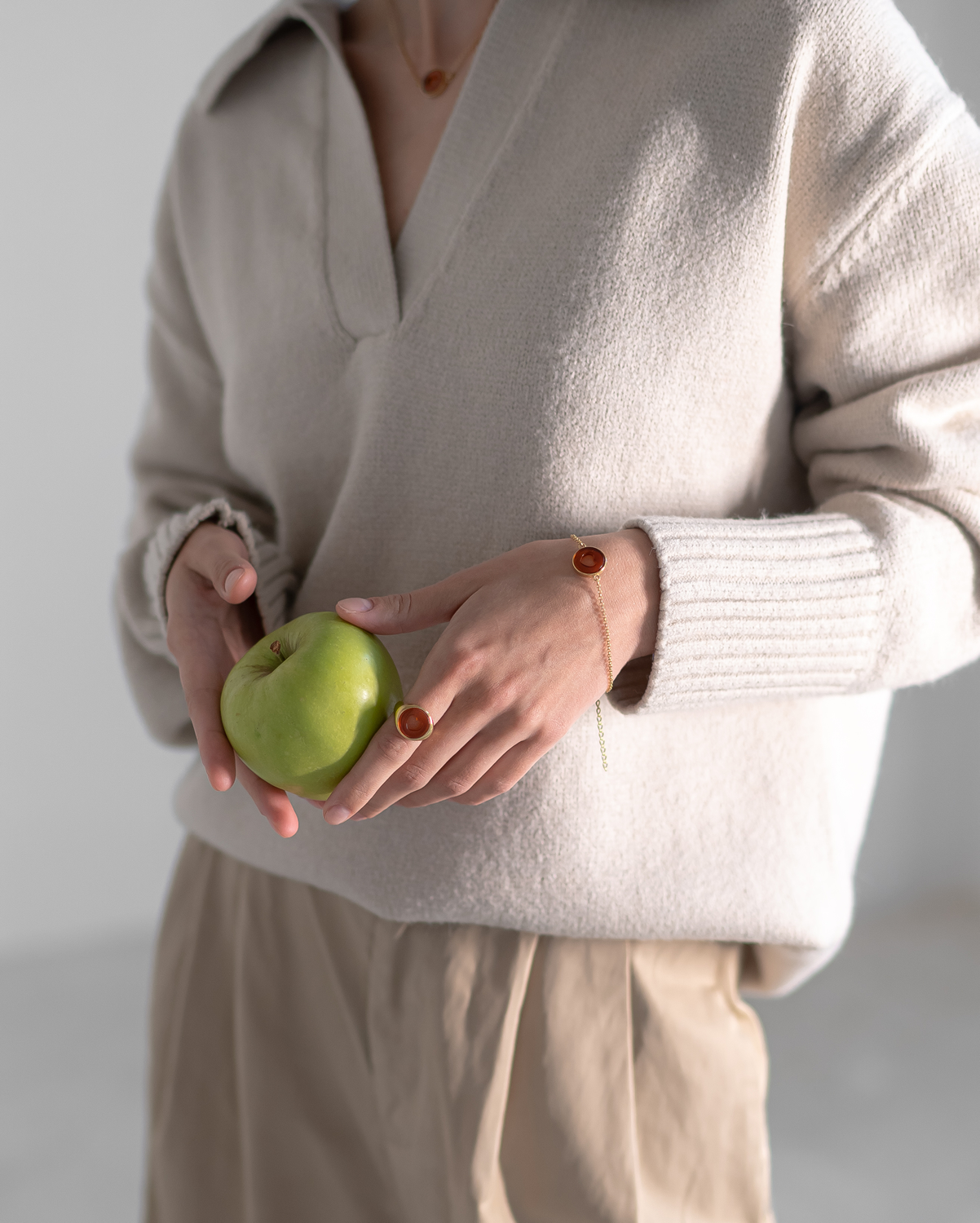 Дизайнерский браслет Sun Stone W9230ZK из серебра 925 пробы, покрытие золочение с натуральным янтарем. Длина 15 см. + 5 см. дополнительные звенья.