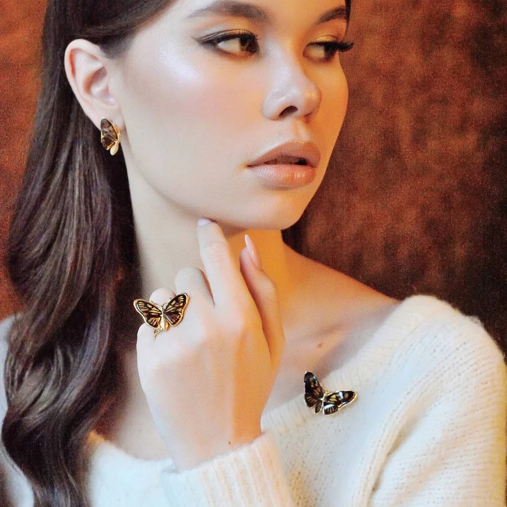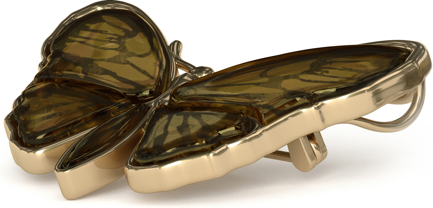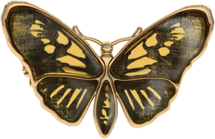 Минималистичная брошь в виде бабочки из золоченого серебра 925 пробы с натуральным янтарем.