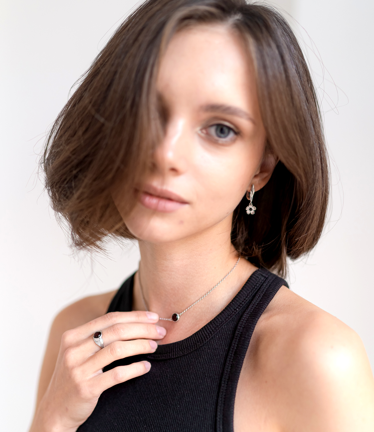Современное минималистичное колье из серебра 925 пробы. Дополнено вставкой из натурального янтаря. Длина 32 см + 5 см (доп. звенья).