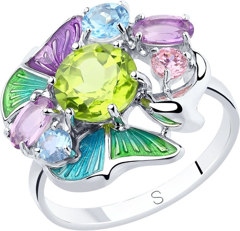 Украшено 2 аметистами, 2 топазами, фианитом, хризолитом и эмалью.