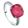 Кольцо из серебра с розовым кристаллом Swarovski и 12 фианитами.