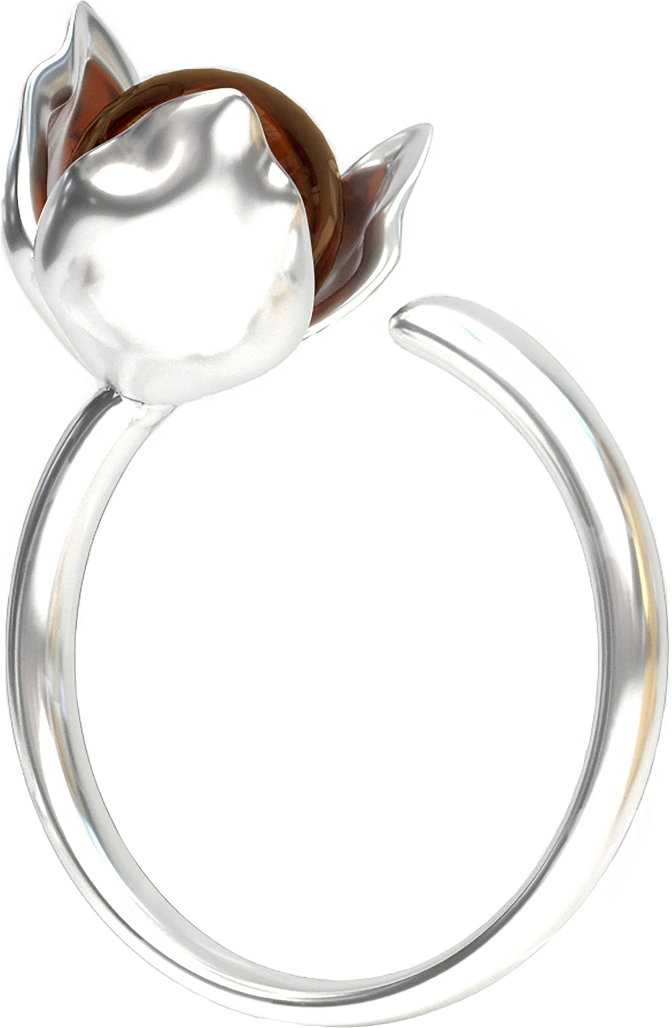 Кольцо из серебра 925 пробы, дополненное вставкой из натурального янтаря.