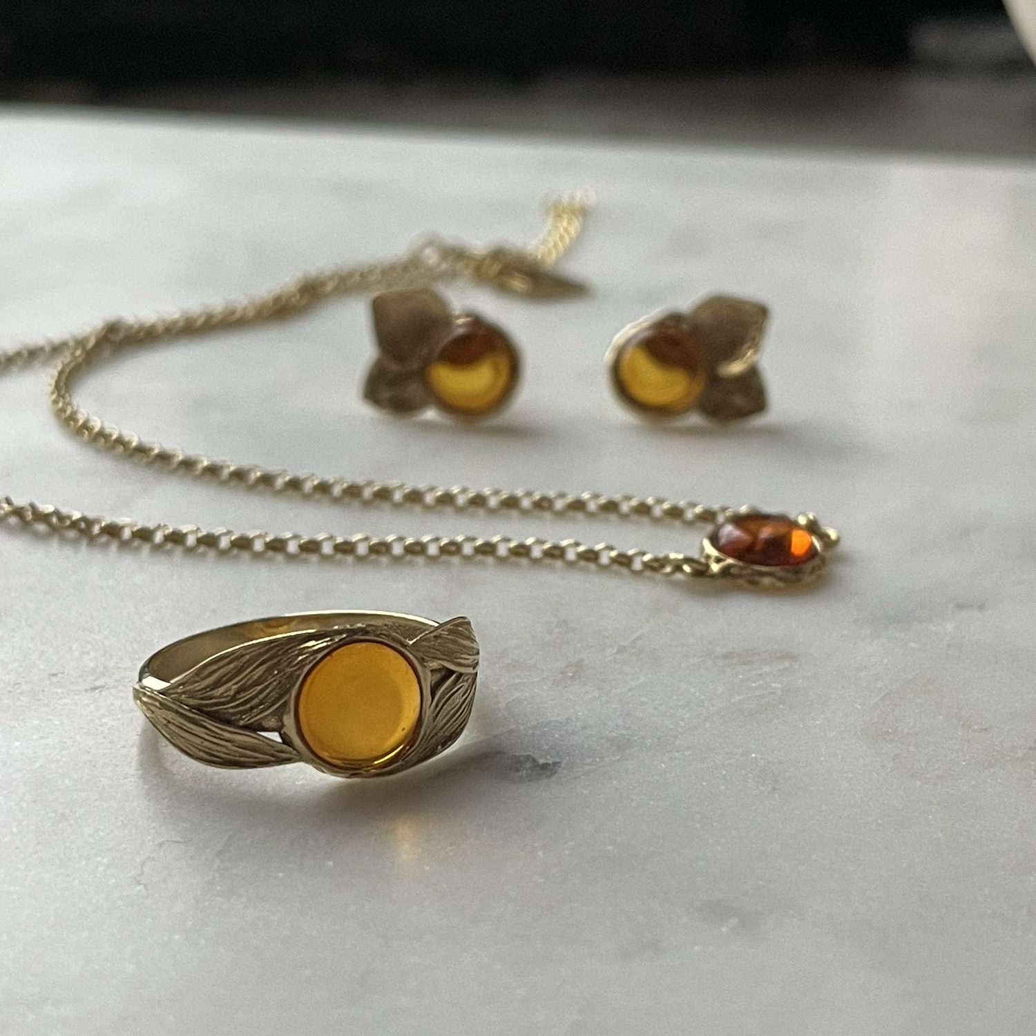 Кольцо из золоченого серебра 925 пробы дополненное вставкой из натурального янтаря.
