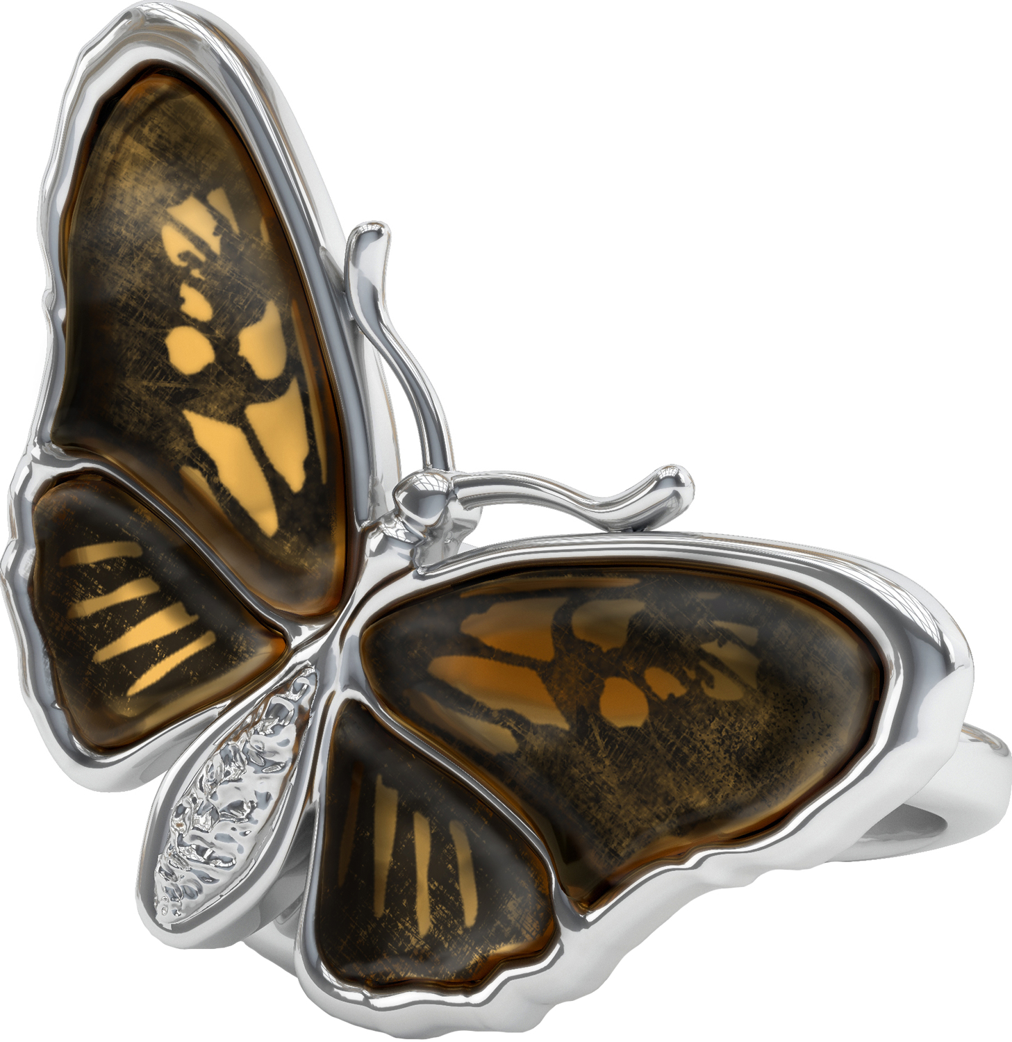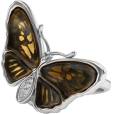 Стильное кольцо от Sun Stone из серебра 925 пробы выполнено в виде бабочки. Крылья бабочки украшены вставками из натурального янтаря.