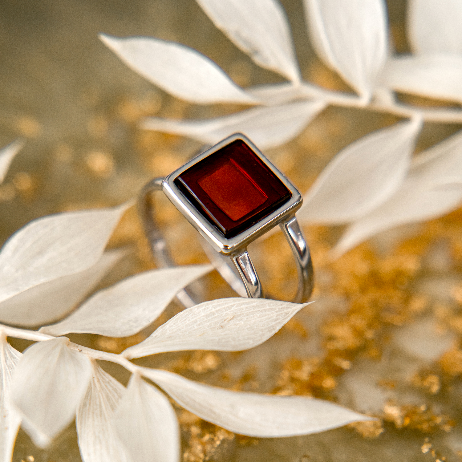 Кольцо из серебра 925 пробы, дополненное вставкой из натурального янтаря.