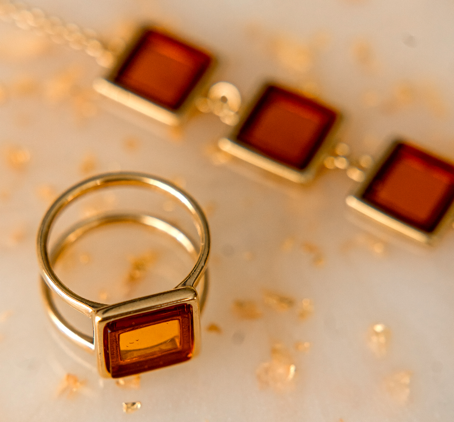 Кольцо из золоченого серебра 925 пробы, дополненное вставкой из натурального янтаря.