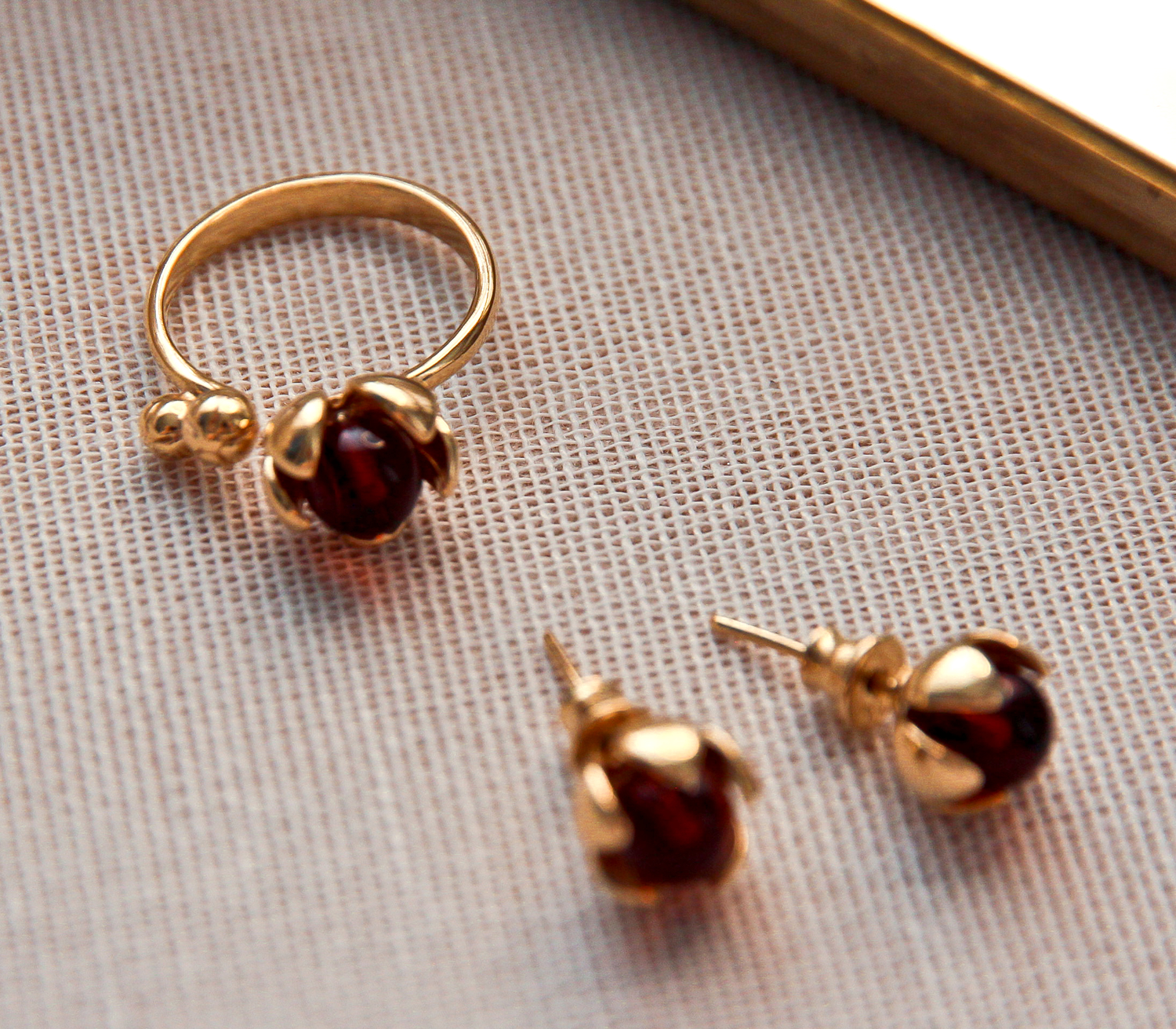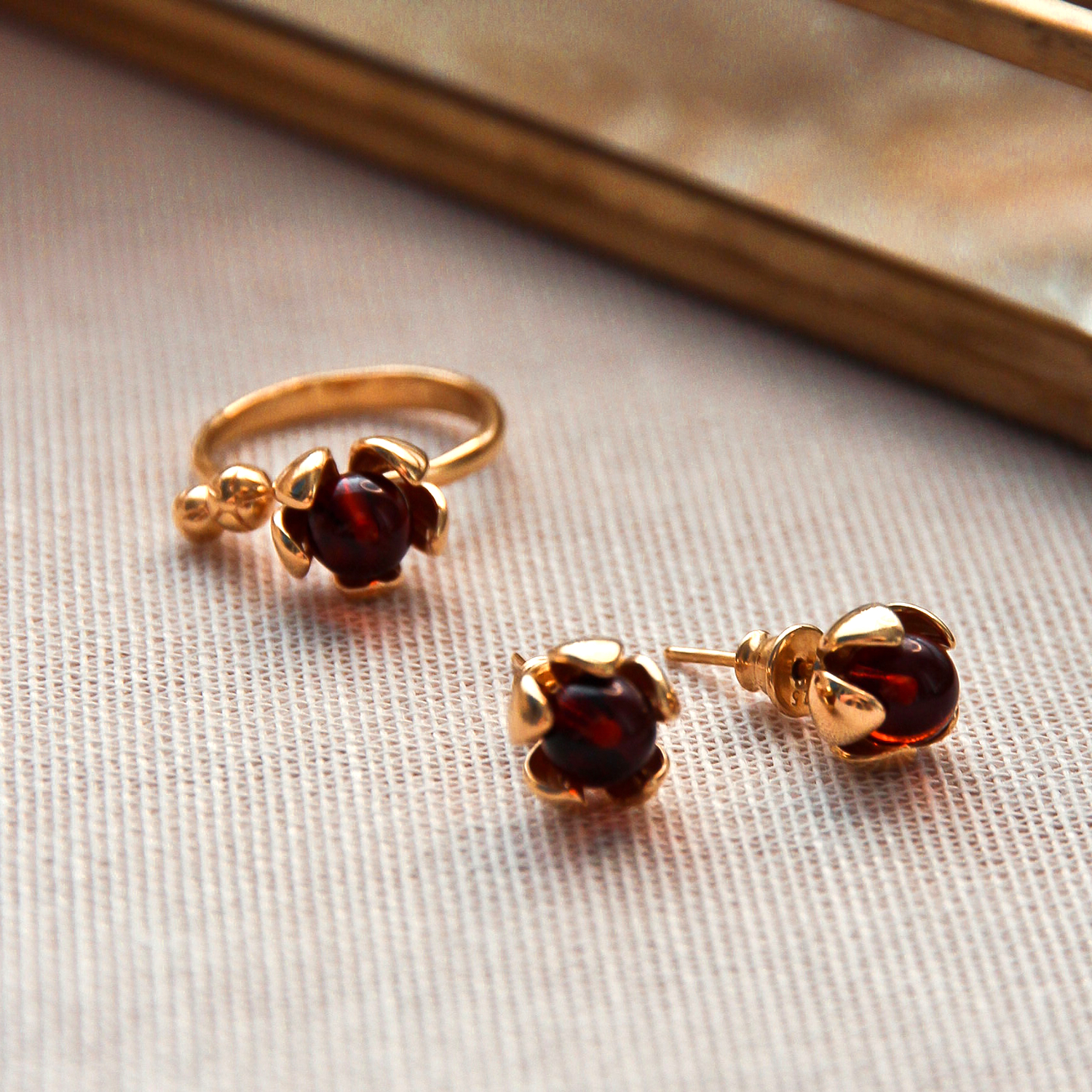 Дизайнерское кольцо R9221ZK из золоченого серебра 925 пробы, украшено натуральным янтарем.