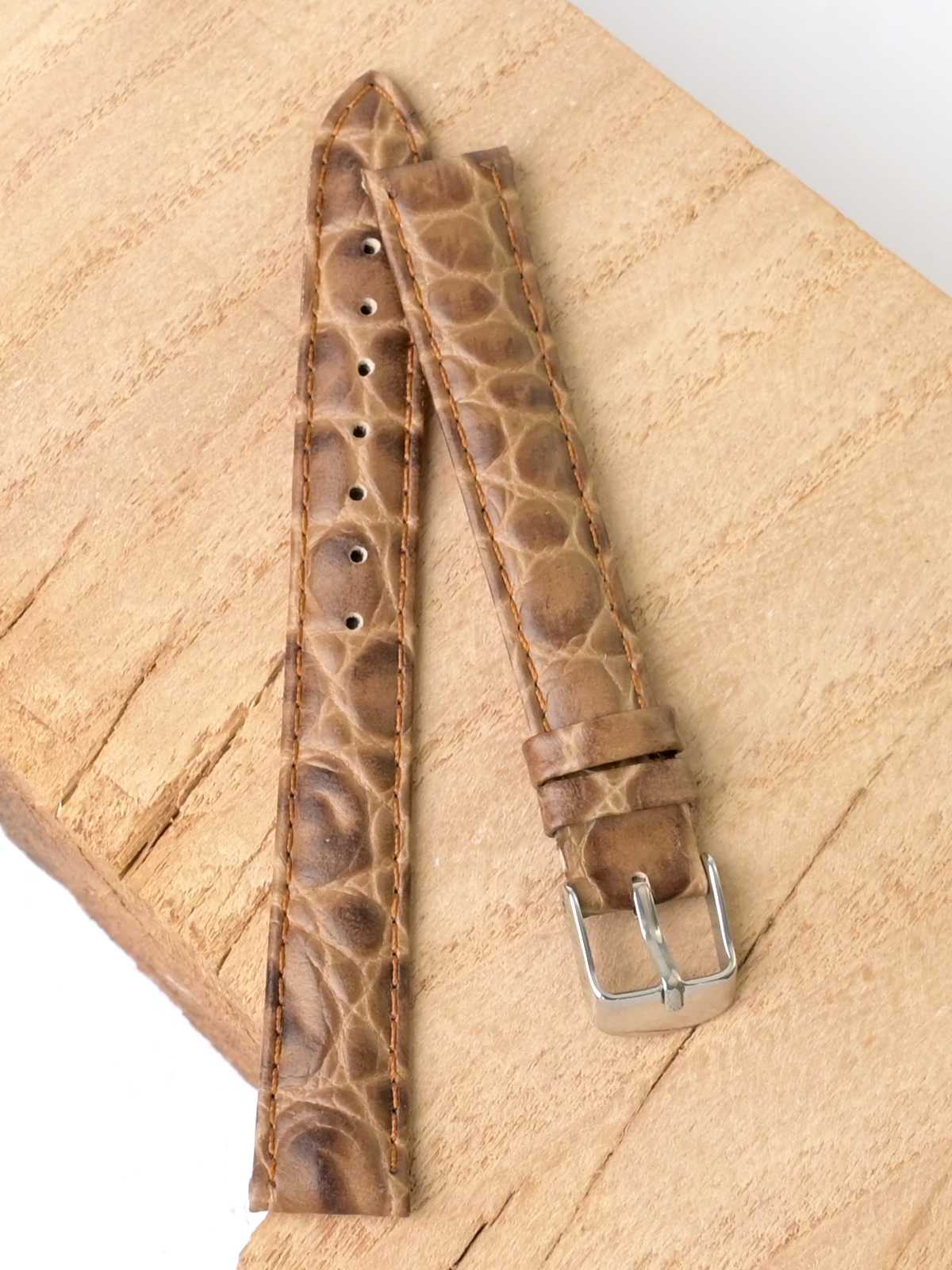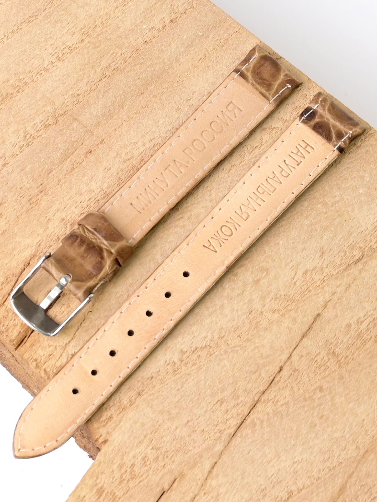 Ремешок из натуральной кожи для наручных часов. Ширина крепления: 16 мм. Ширина пряжки: 14 мм. Длина большей части: 125 мм. Длина меньшей части без застежки: 85 мм. Пряжка выполнена из нержавеющей стали.