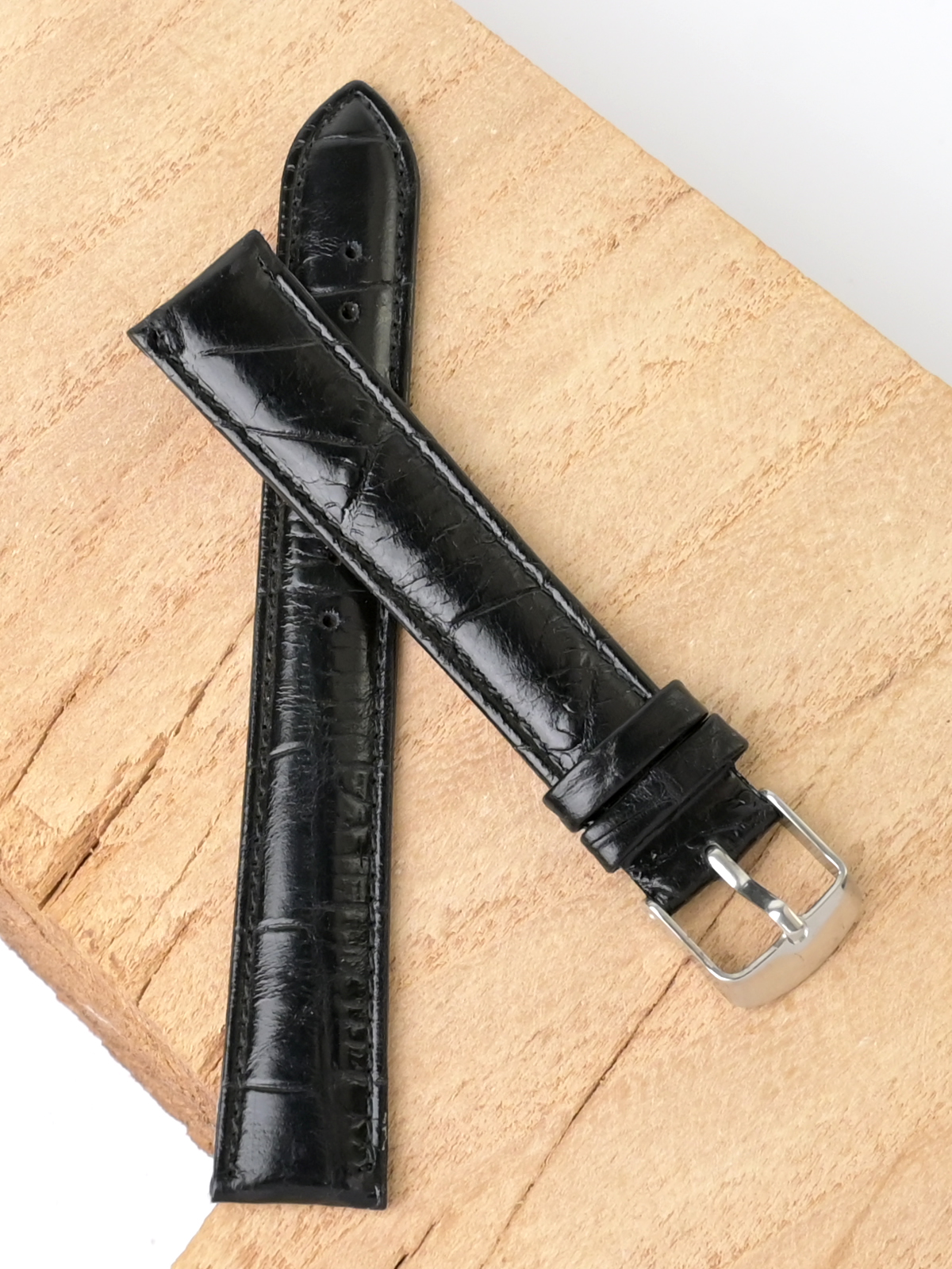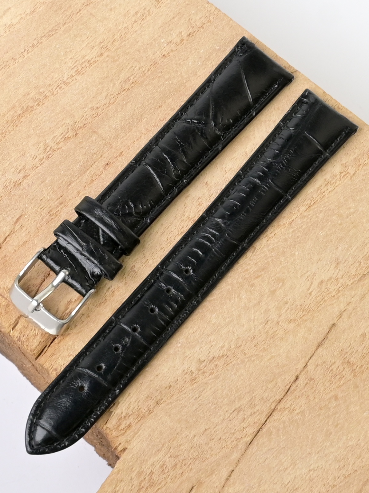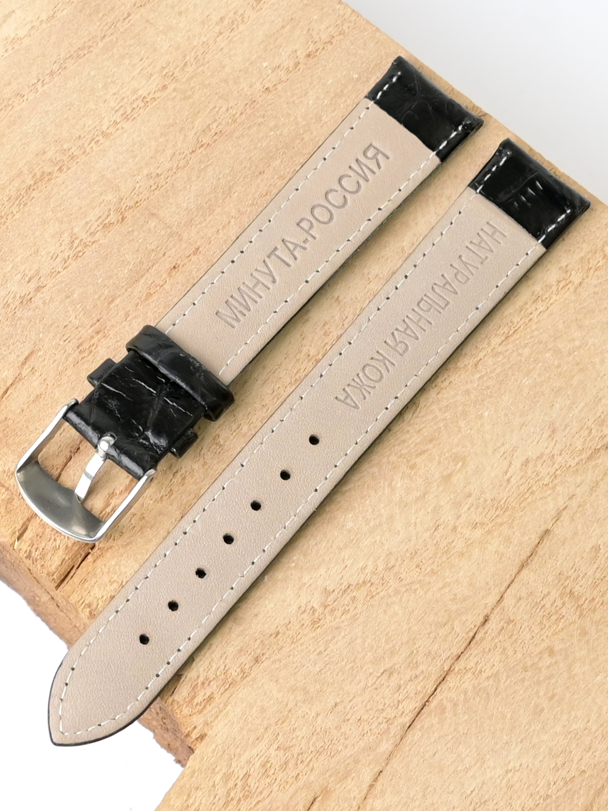 Ремешок из натуральной кожи для наручных часов. Ширина крепления: 18 мм. Ширина пряжки: 16 мм. Длина большей части: 125 мм. Длина меньшей части без застежки: 85 мм. Пряжка выполнена из нержавеющей стали.