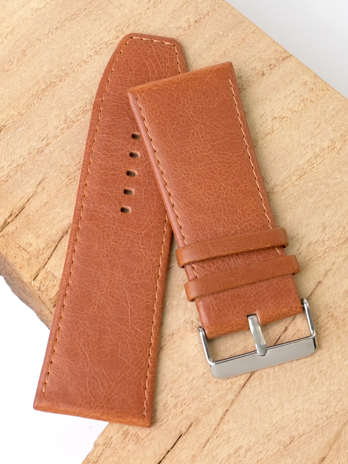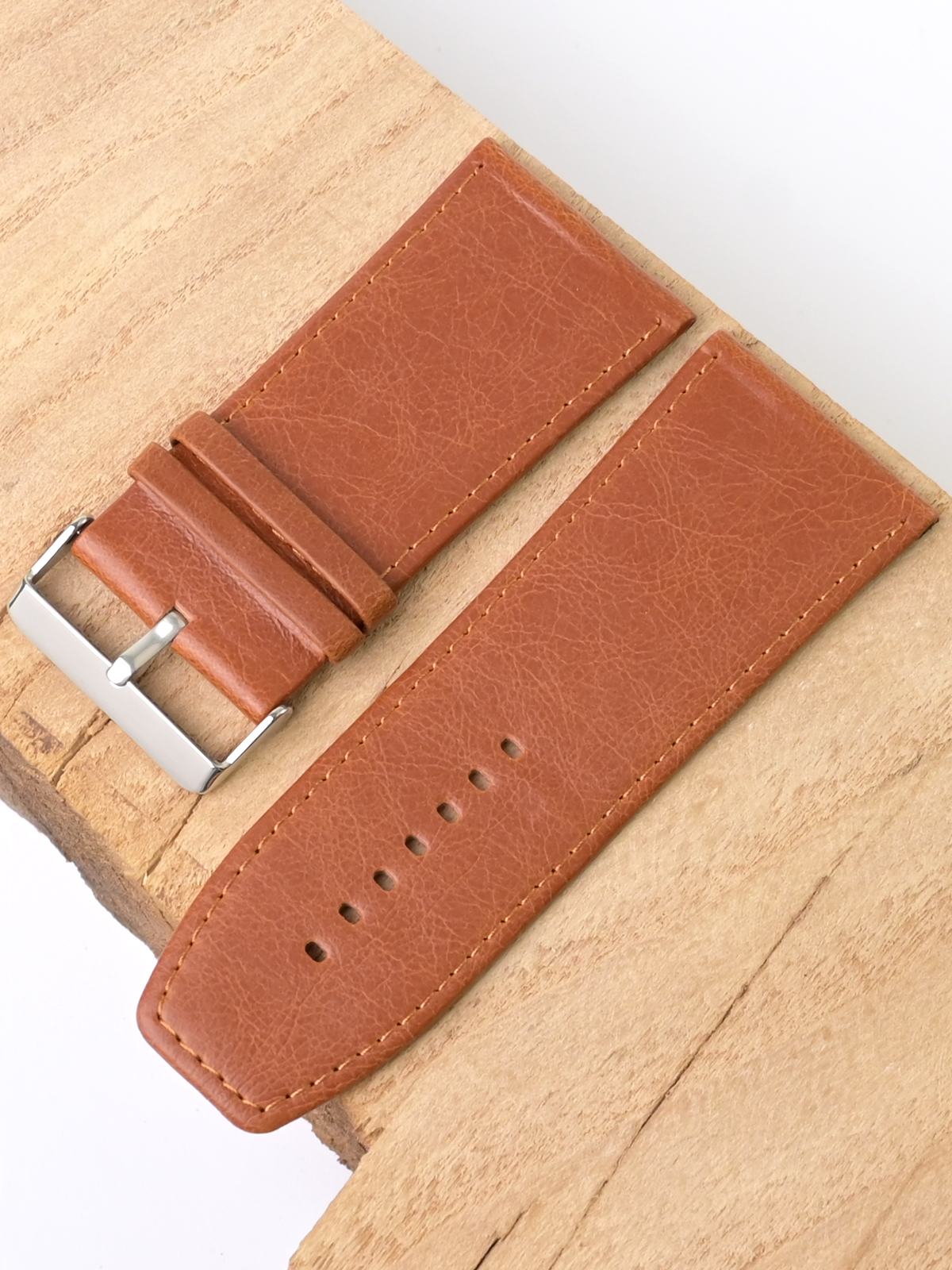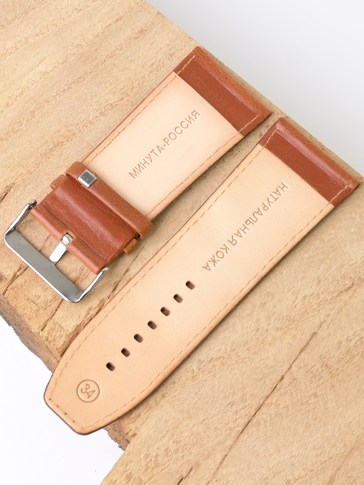 Ремешок из натуральной кожи для наручных часов. Ширина крепления: 34 мм. Ширина пряжки: 30 мм. Длина большей части: 120 мм. Длина меньшей части без застежки: 80 мм. Пряжка выполнена из нержавеющей стали.