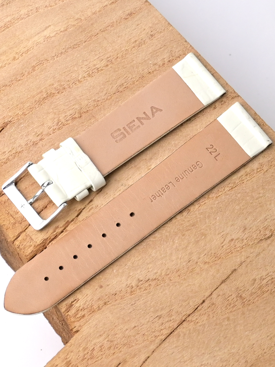 Ремешок Siena из натуральной кожи для наручных часов. Ширина крепления: 22 мм. Ширина пряжки: 20 мм. Длина большей части: 125 мм. Длина меньшей части без застежки: 85 мм. Пряжка выполнена из алюминия.