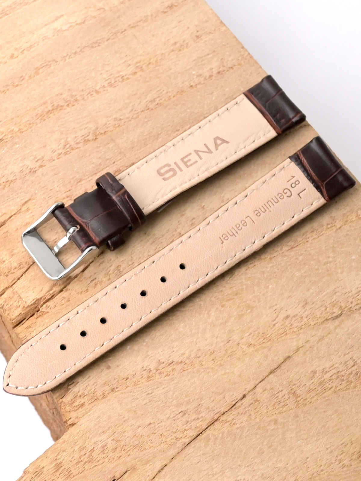 Ремешок Siena из натуральной кожи для наручных часов. Ширина крепления: 18 мм. Ширина пряжки: 16 мм. Длина большей части: 120 мм. Длина меньшей части без застежки: 80 мм. Пряжка выполнена из нержавеющей стали.