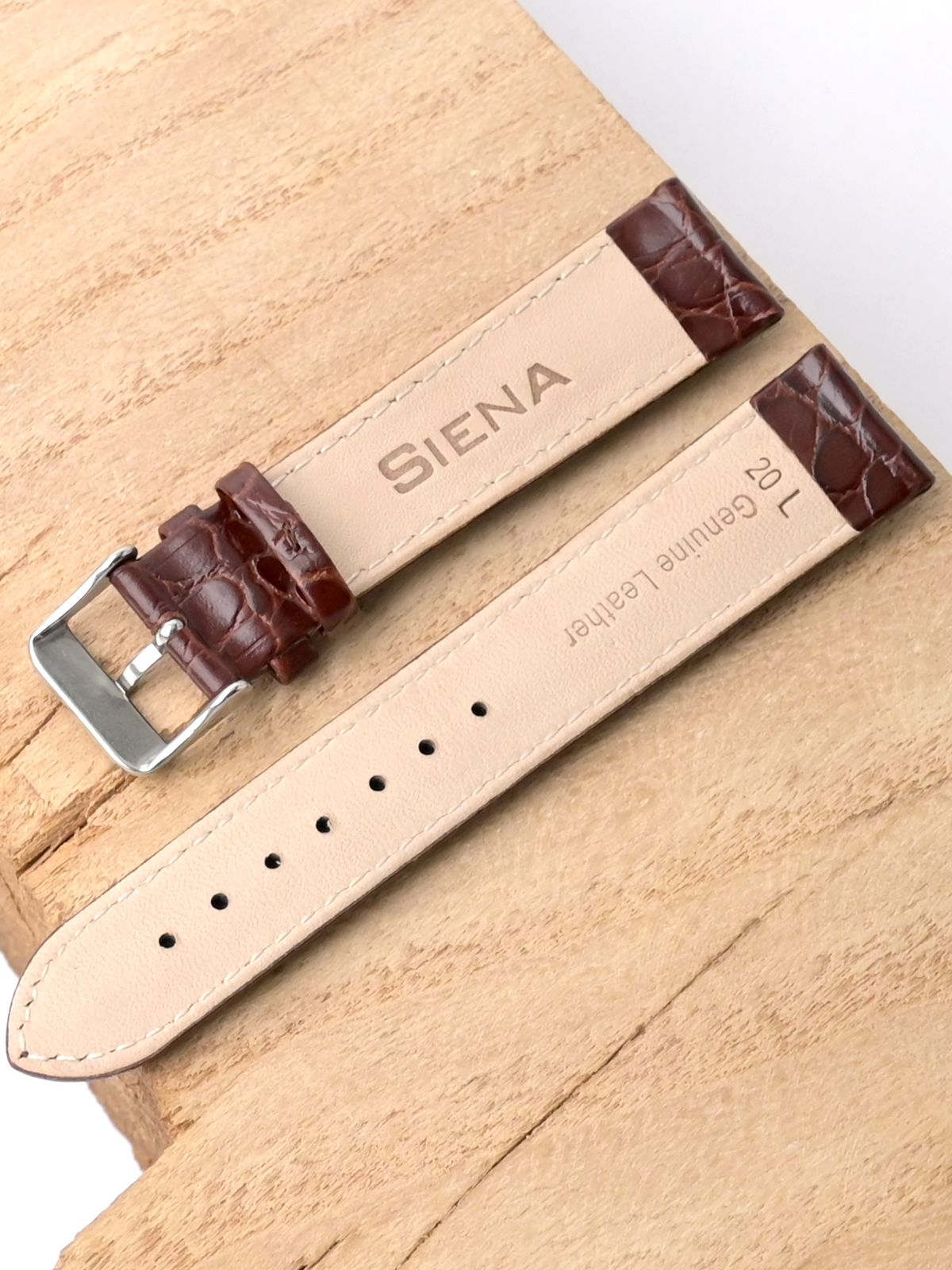 Ремешок Siena из натуральной кожи для наручных часов. Ширина крепления: 20 мм. Ширина пряжки: 18 мм. Длина большей части: 120 мм. Длина меньшей части без застежки: 80 мм. Пряжка выполнена из нержавеющей стали.