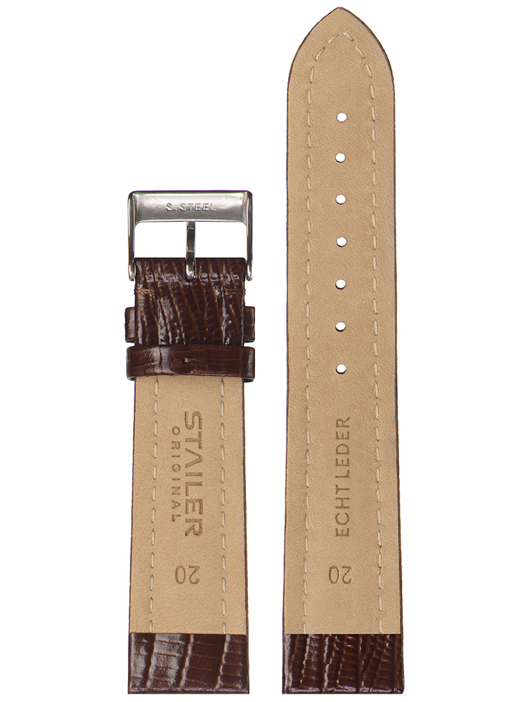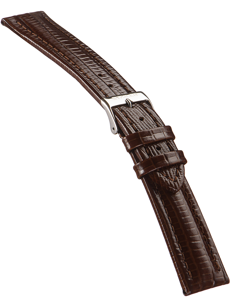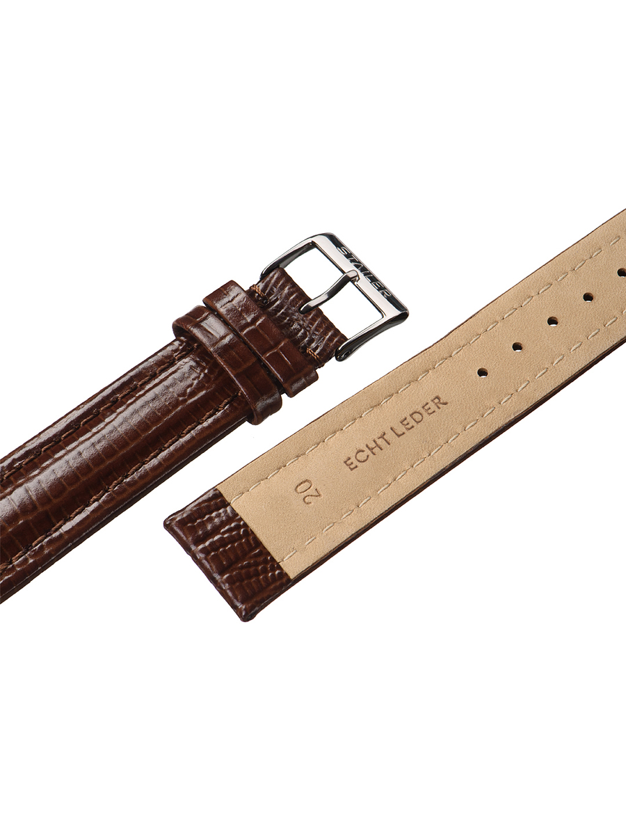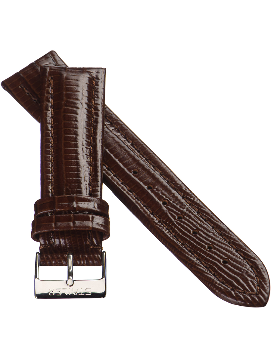 Ремешок из натуральной кожи для наручных часов. Ширина крепления: 22 мм. Ширина пряжки: 18 мм. Длина большей части: 125 мм. Длина меньшей части без застежки: 85 мм. Пряжка выполнена из нержавеющей стали.