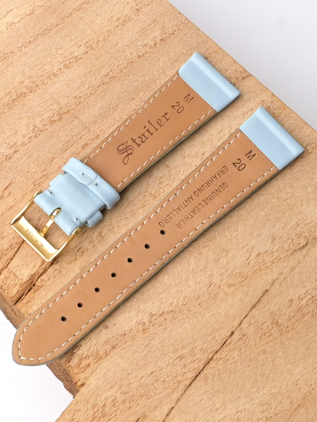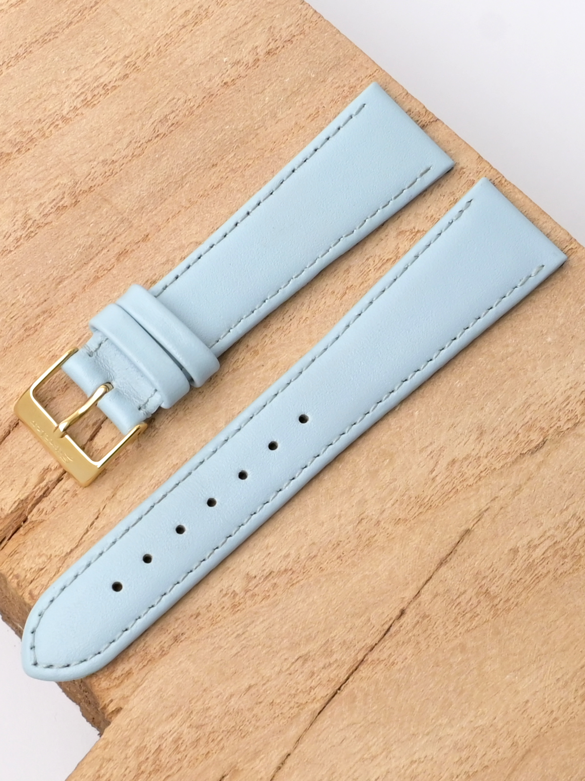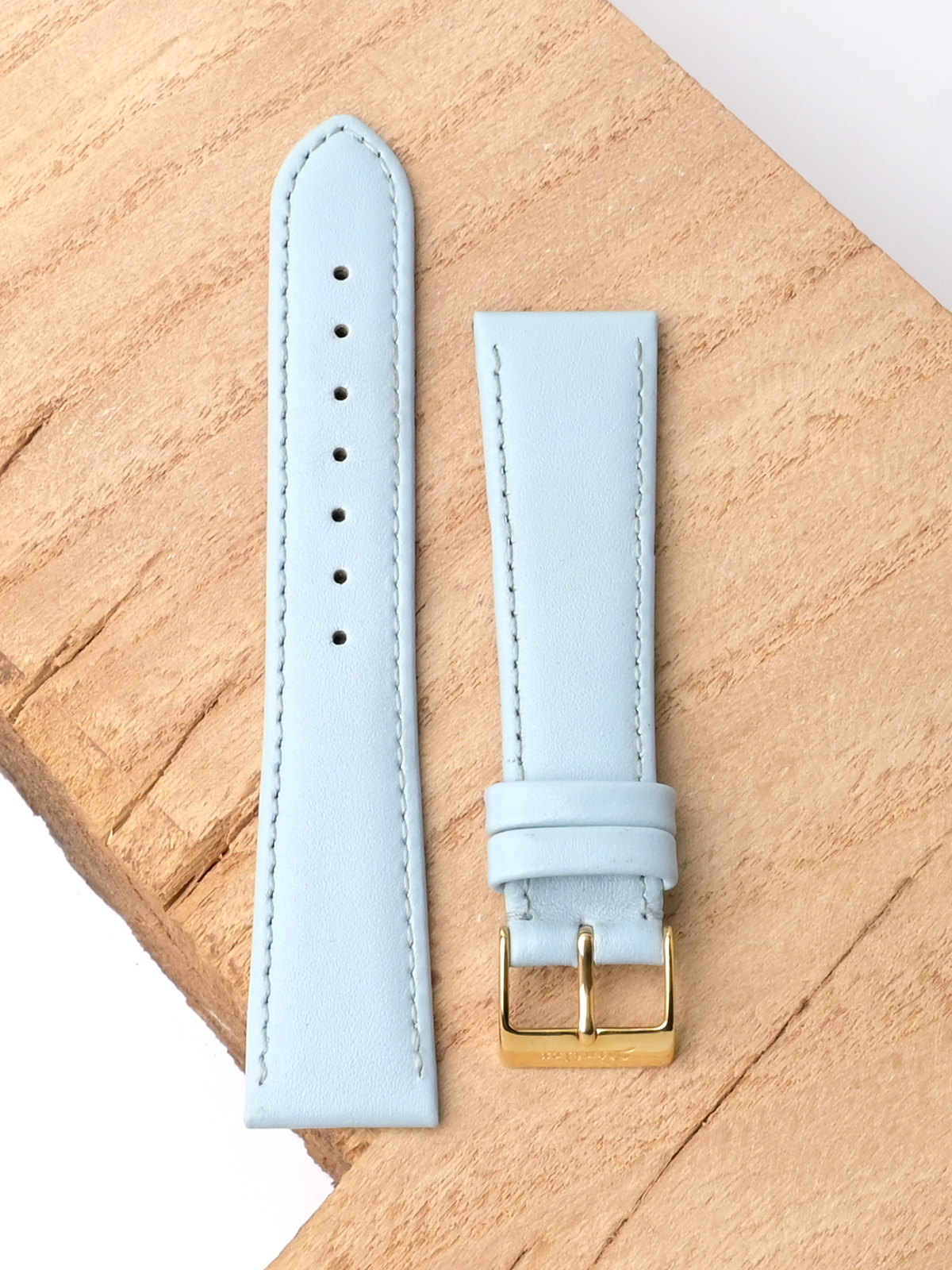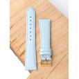 Ремешок для наручных часов из натуральной кожи. Ширина крепления: 20 мм. Ширина пряжки: 16 мм. Длина большей части: 115 мм. Длина меньшей части без застежки: 75 мм. Пряжка выполнена из нержавеющей стали с IP покрытием цвета желтого золота.