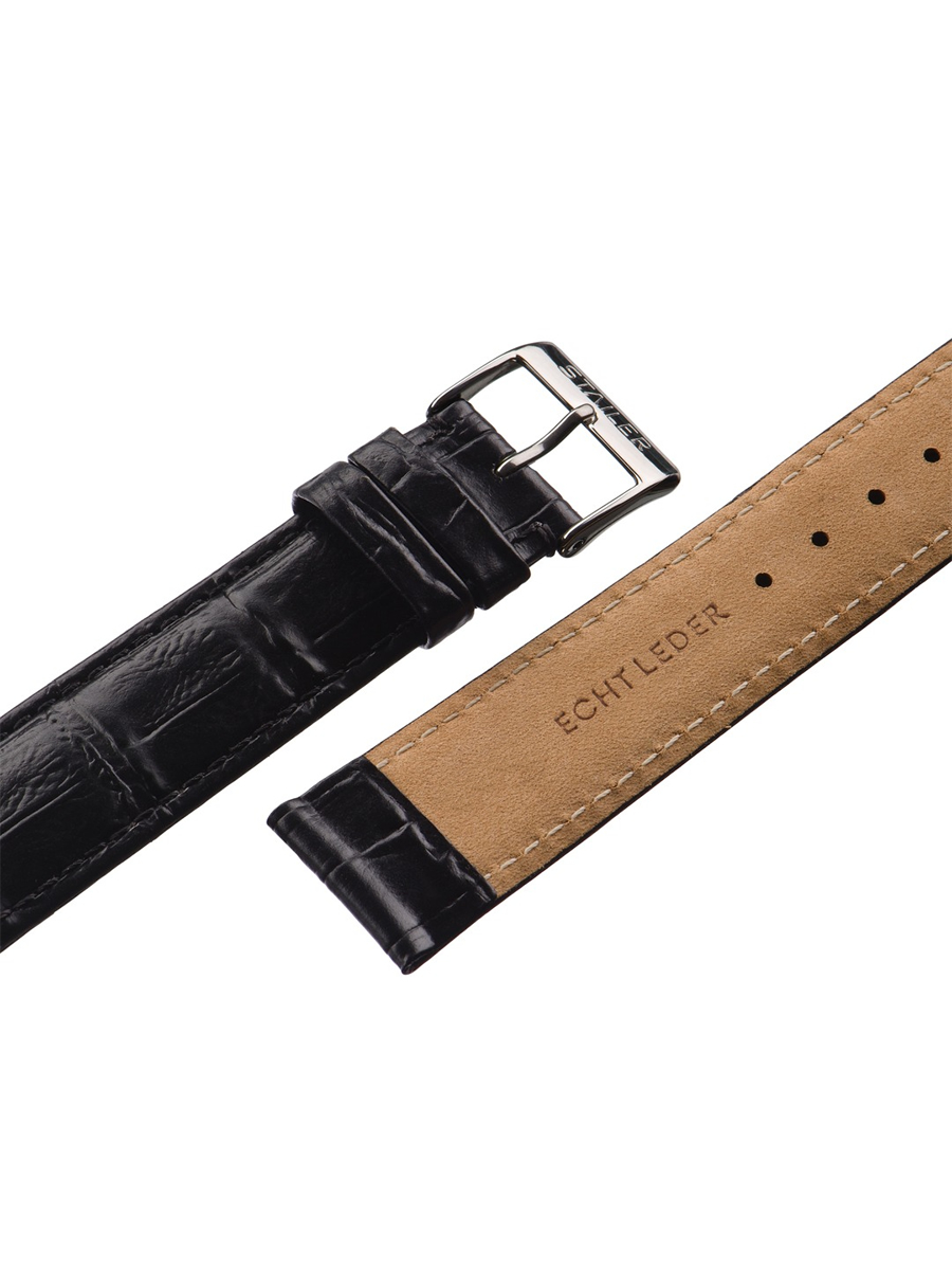 Ремешок для наручных часов из натуральной кожи. Ширина крепления: 18 мм. Ширина пряжки: 16 мм. Длина большей части: 125 мм. Длина меньшей части без застежки: 85 мм. Пряжка выполнена из нержавеющей стали.