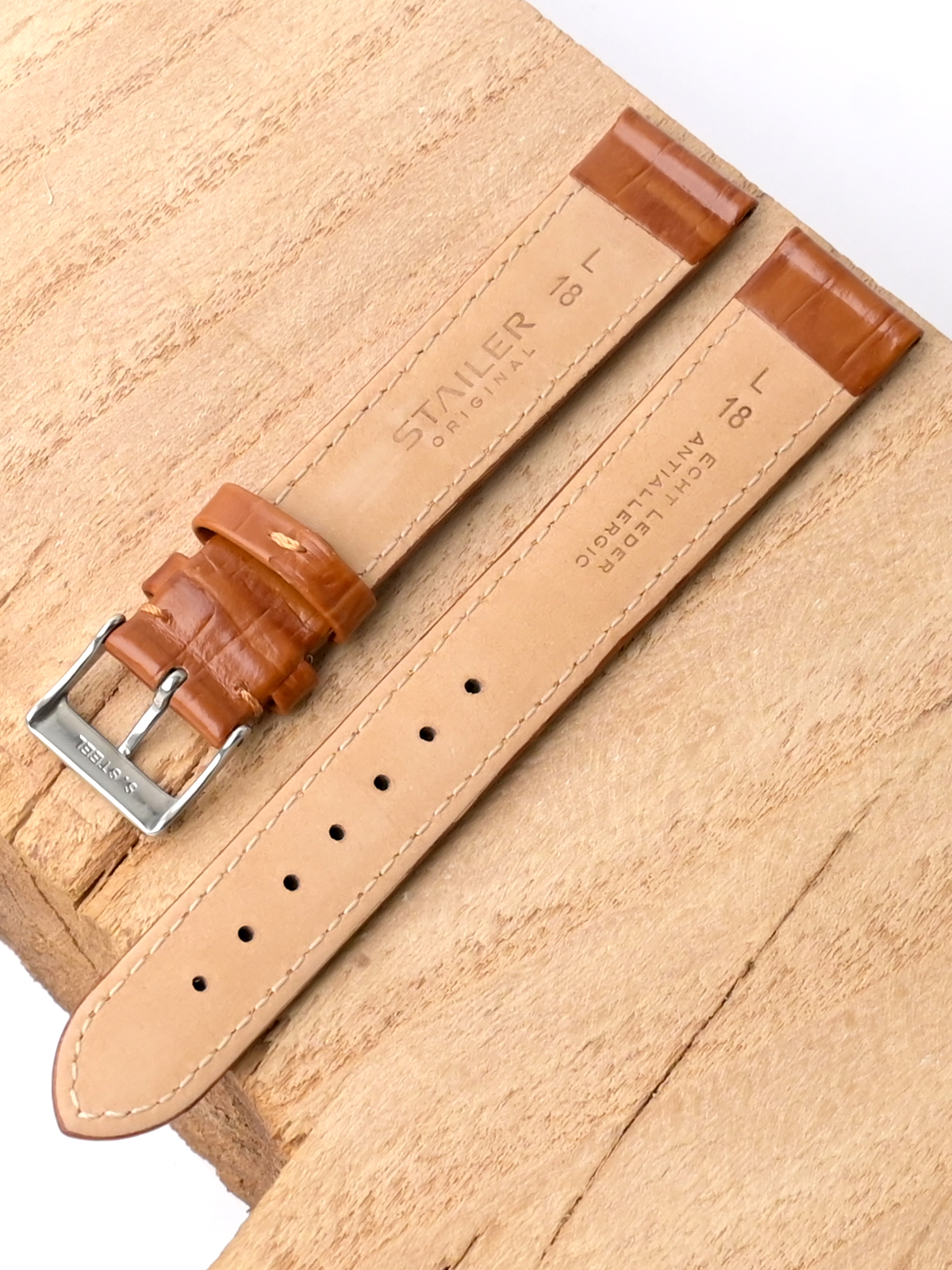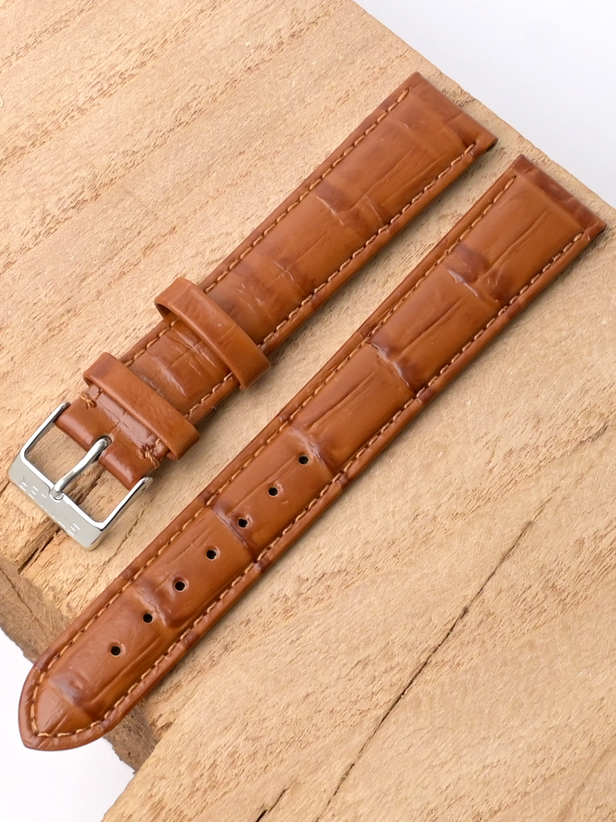 Ремешок из натуральной кожи для наручных часов. Ширина крепления: 18 мм. Ширина пряжки: 16 мм. Длина большей части: 125 мм. Длина меньшей части без застежки: 85 мм. Пряжка выполнена из нержавеющей стали.
