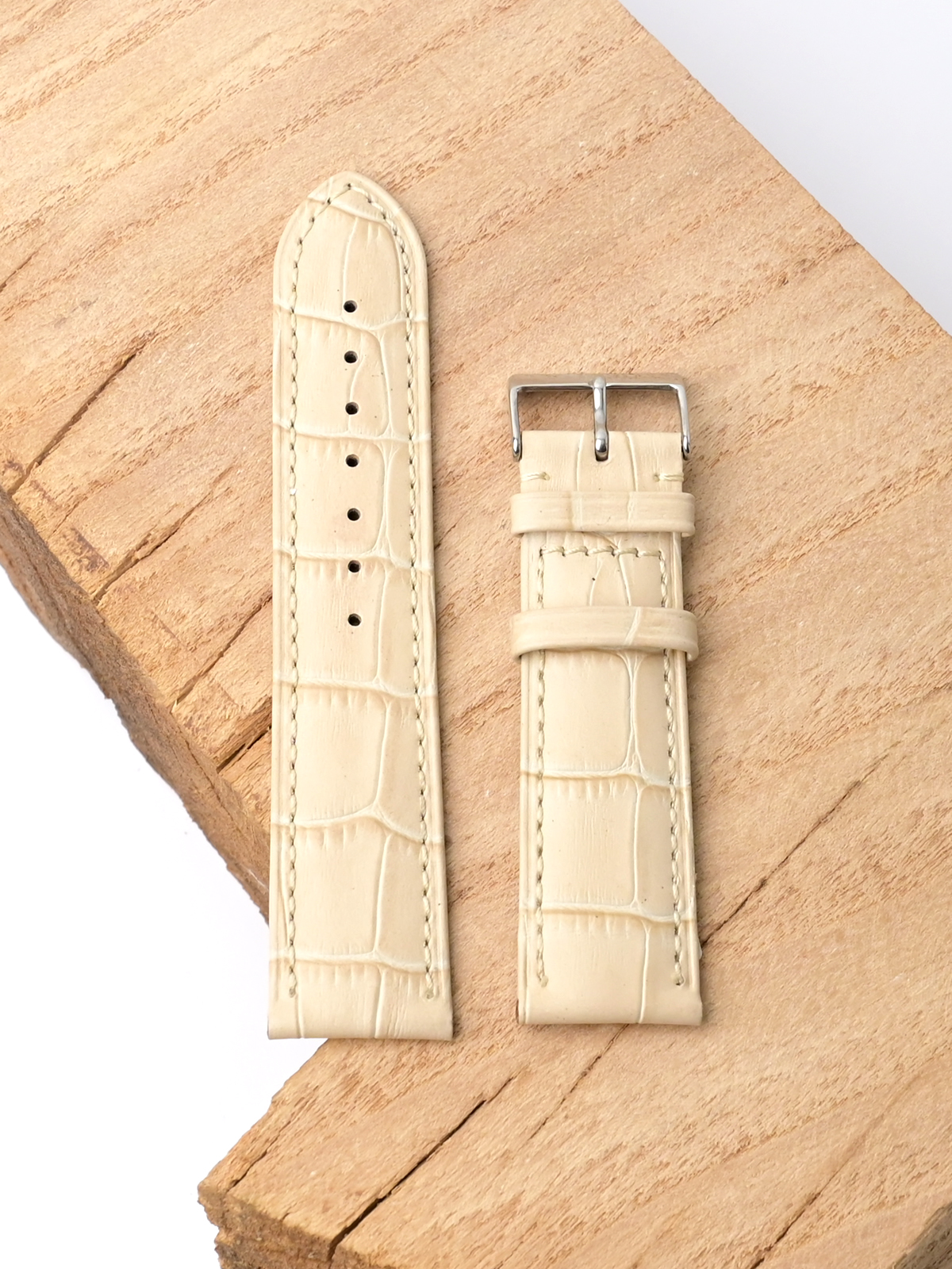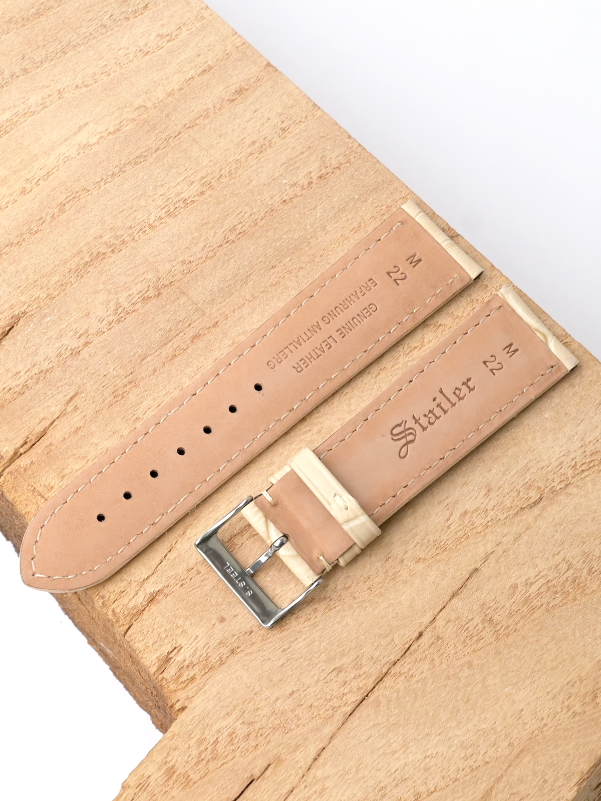 Ремешок для наручных часов из натуральной кожи. Ширина крепления: 22 мм. Ширина пряжки: 20 мм. Длина большей части: 115 мм. Длина меньшей части без застежки: 75 мм. Пряжка выполнена из нержавеющей стали.