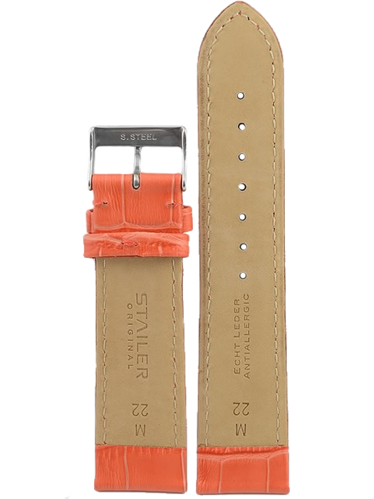 Ремешок из натуральной кожи для наручных часов. Ширина крепления: 22 мм. Ширина пряжки: 20 мм. Длина большей части: 115 мм. Длина меньшей части без застежки: 75 мм. Пряжка выполнена из нержавеющей стали.