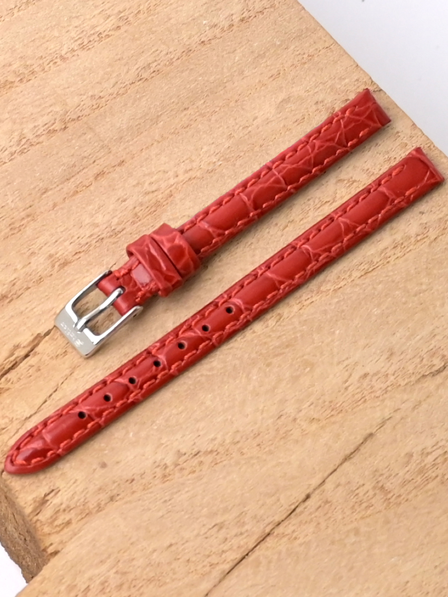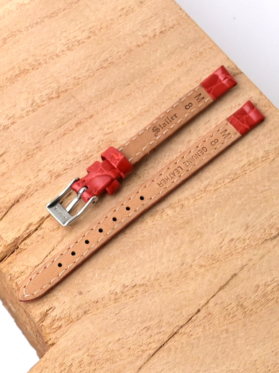 Ремешок из натуральной кожи для наручных часов. Ширина крепления: 10 мм. Ширина пряжки: 8 мм. Длина большей части: 105 мм. Длина меньшей части без застежки: 70 мм. Пряжка выполнена из нержавеющей стали.