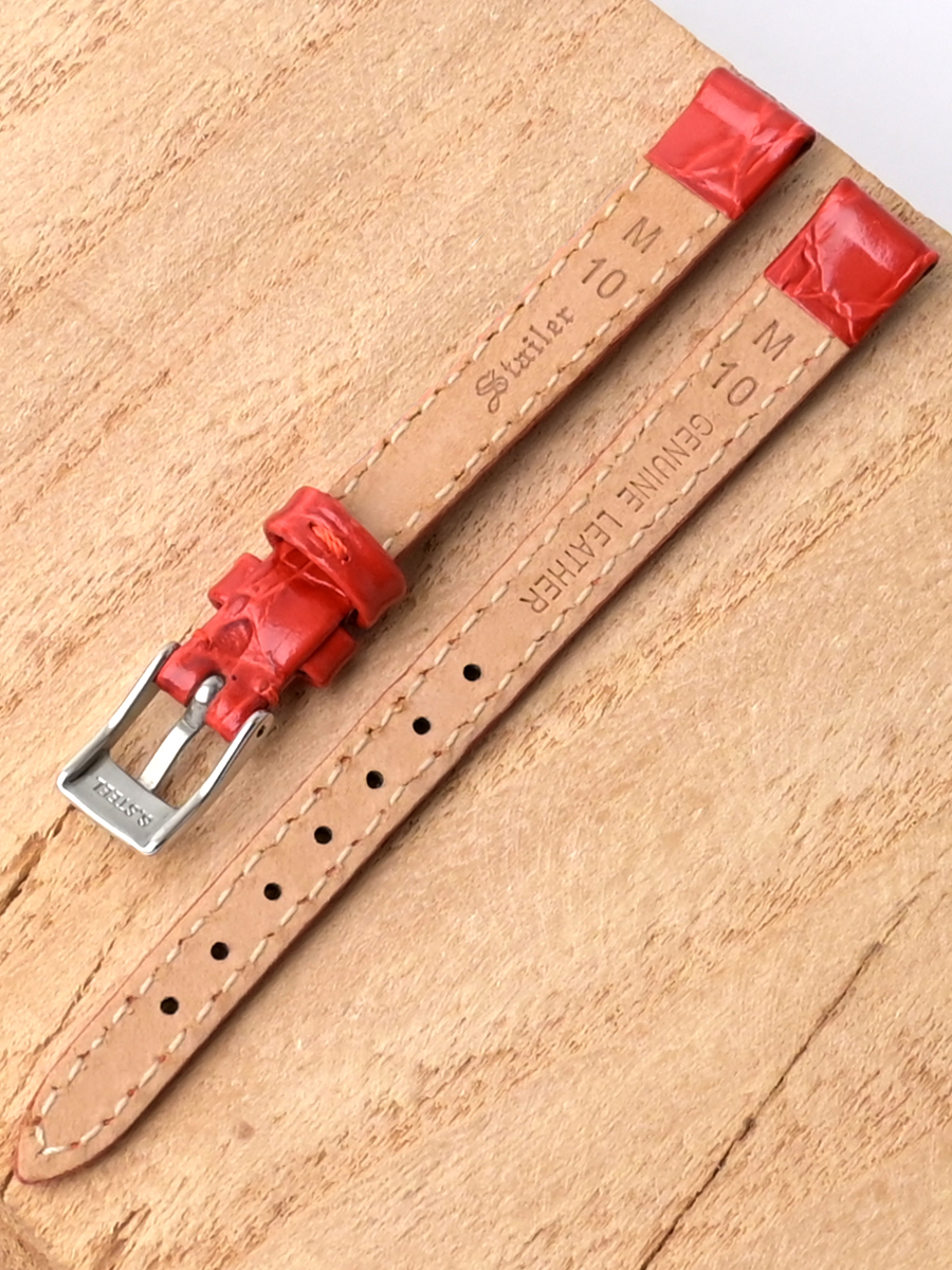 Ремешок из натуральной кожи для наручных часов. Ширина крепления: 10 мм. Ширина пряжки: 8 мм. Длина большей части: 105 мм. Длина меньшей части без застежки: 75 мм. Пряжка выполнена из нержавеющей стали.
