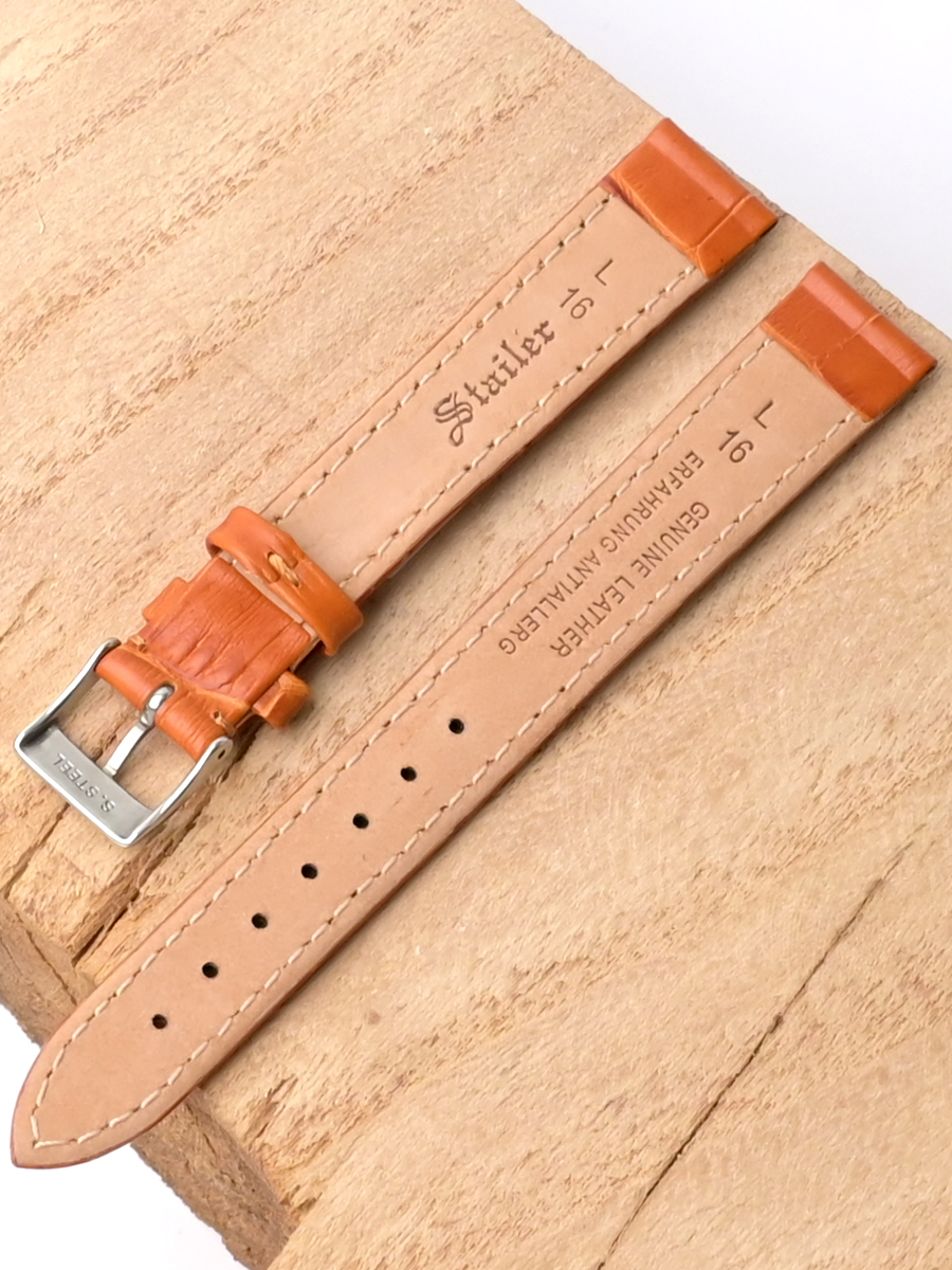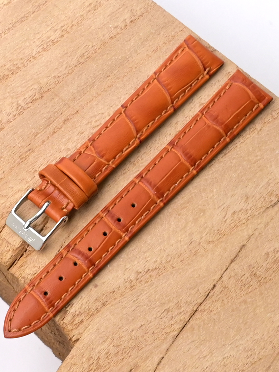 Ремешок из натуральной кожи для наручных часов. Ширина крепления: 16 мм. Ширина пряжки: 14 мм. Длина большей части: 125 мм. Длина меньшей части без застежки: 85 мм. Пряжка выполнена из нержавеющей стали.