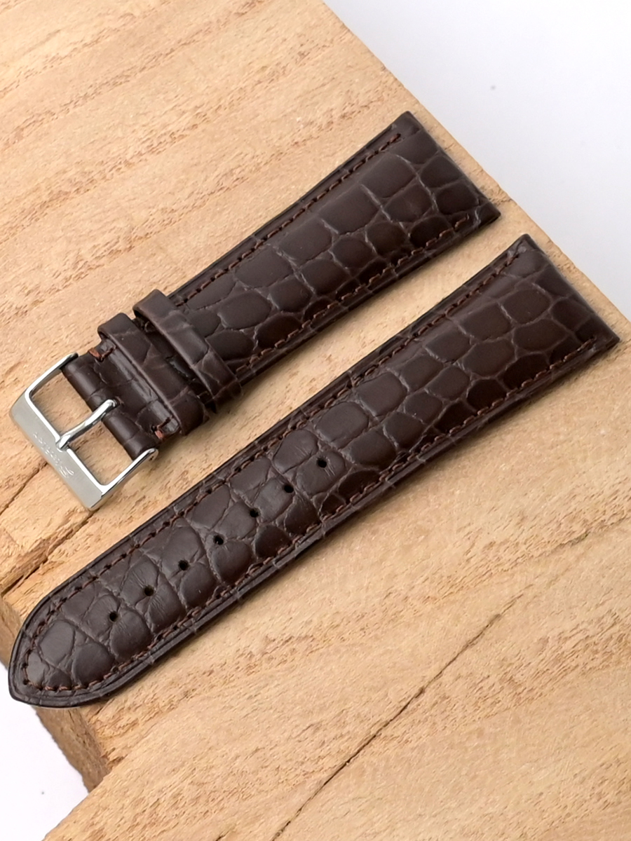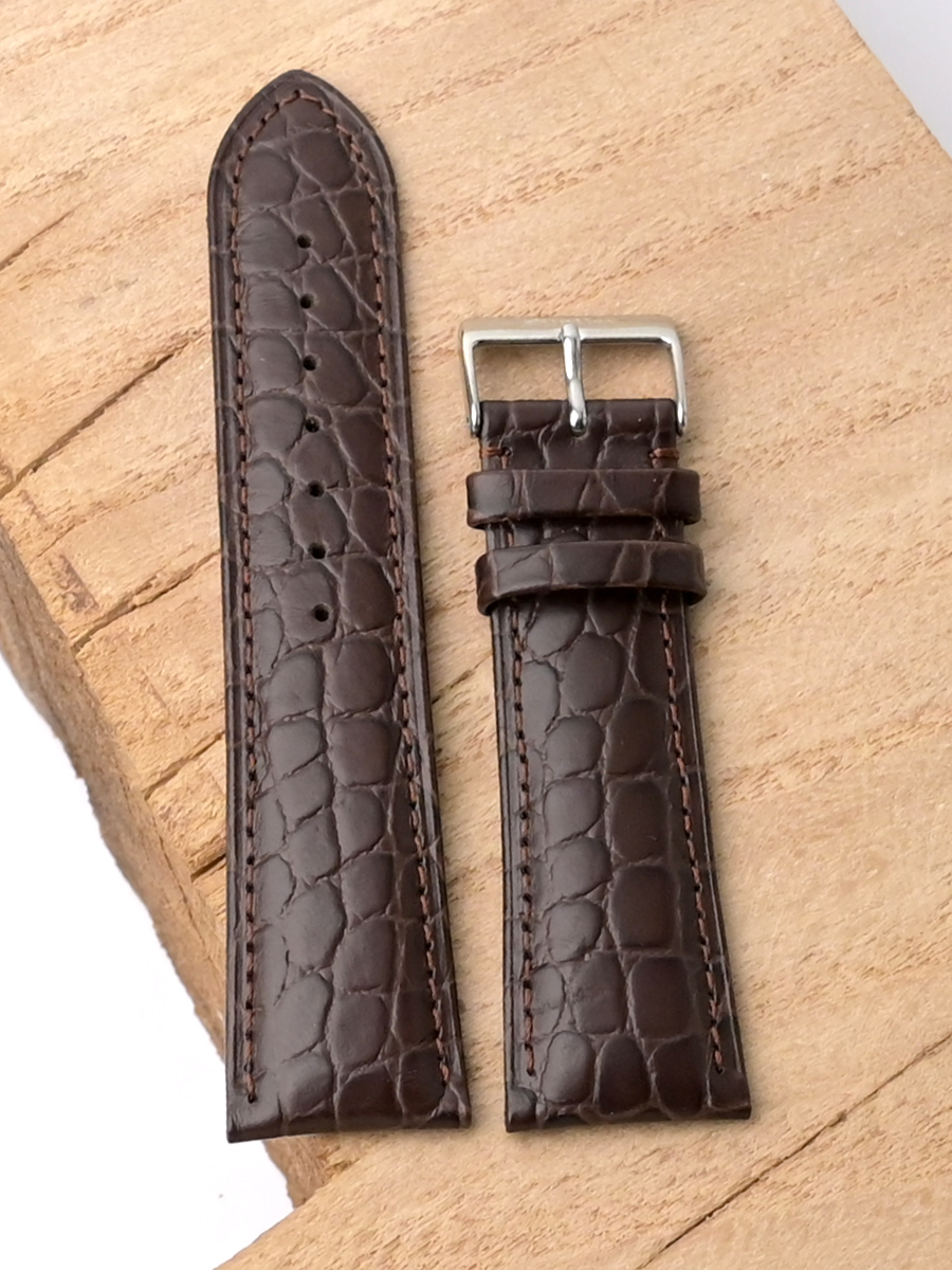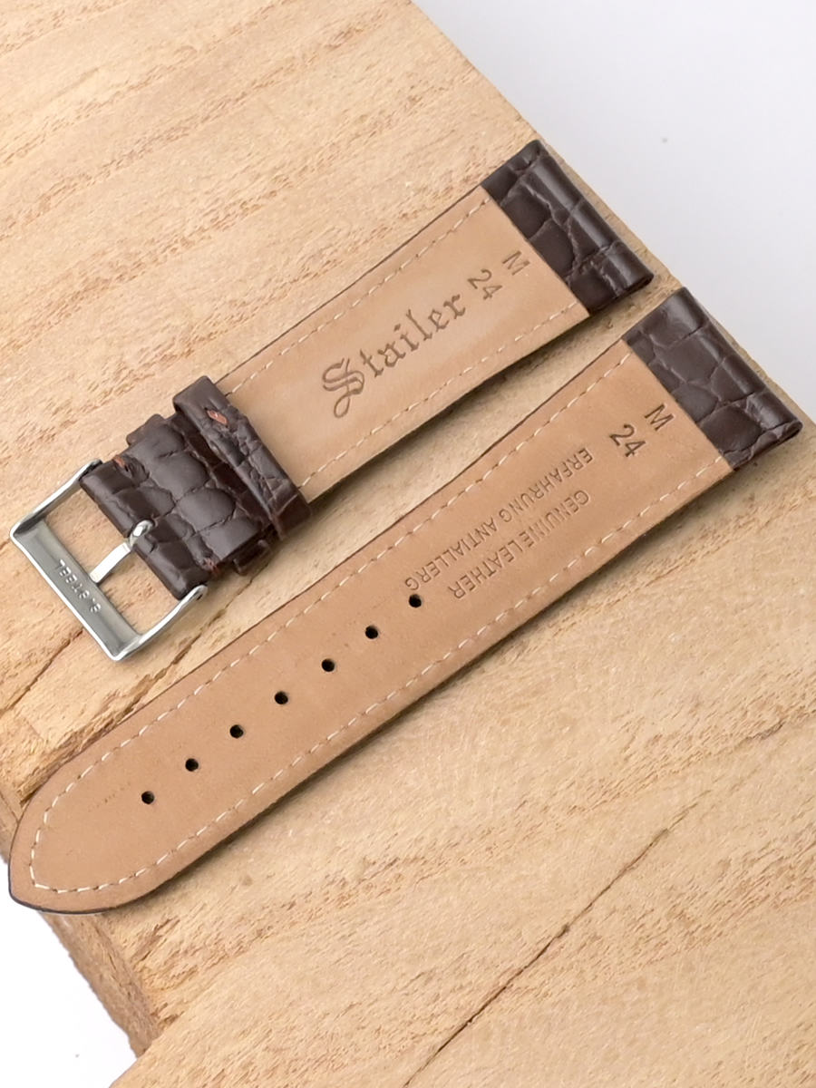 Ремешок из натуральной кожи для наручных часов. Ширина крепления: 24 мм. Ширина пряжки: 20 мм. Длина большей части: 115 мм. Длина меньшей части без застежки: 75 мм. Пряжка выполнена из нержавеющей стали.
