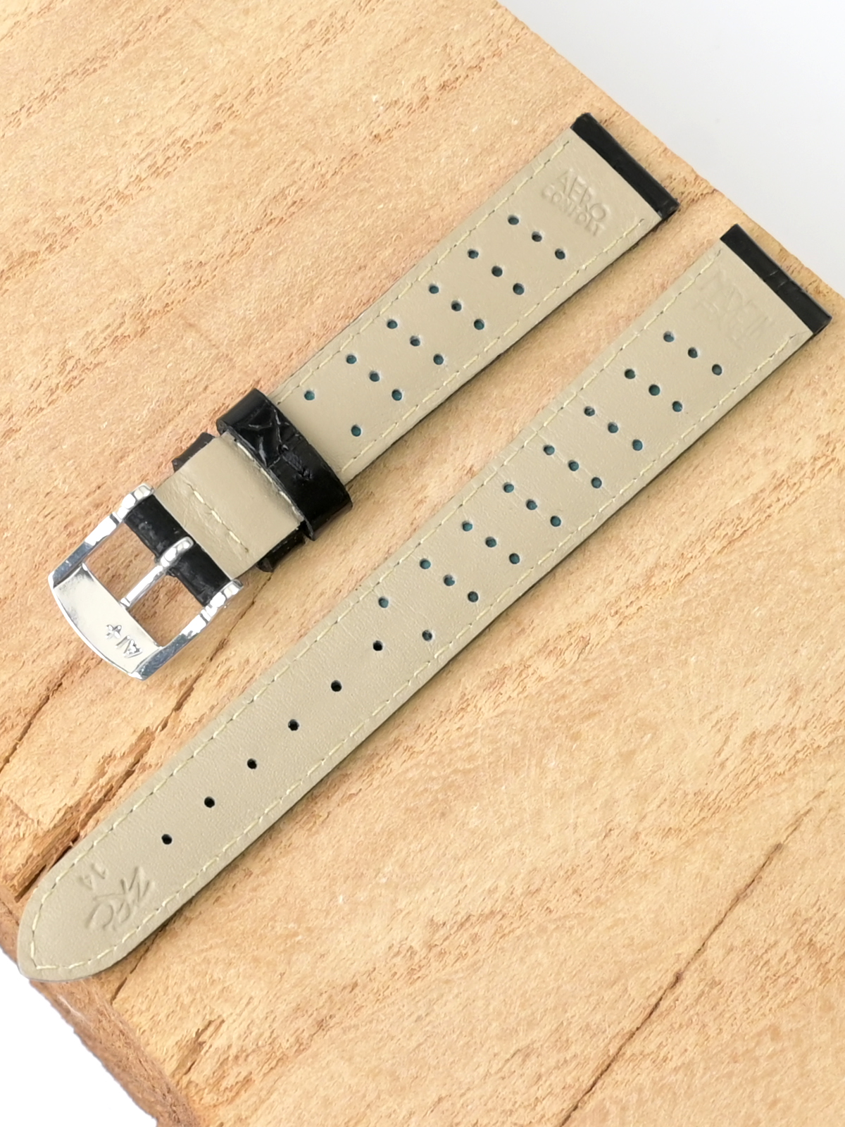 Ремешок из натуральной кожи для наручных часов. Ширина крепления: 14 мм. Ширина пряжки: 12 мм. Длина большей части: 110 мм. Длина меньшей части без застежки: 90 мм. Для более комфортного ношения внутренняя часть ремешка имеет перфорацию. Пряжка выполнена из алюминия.
