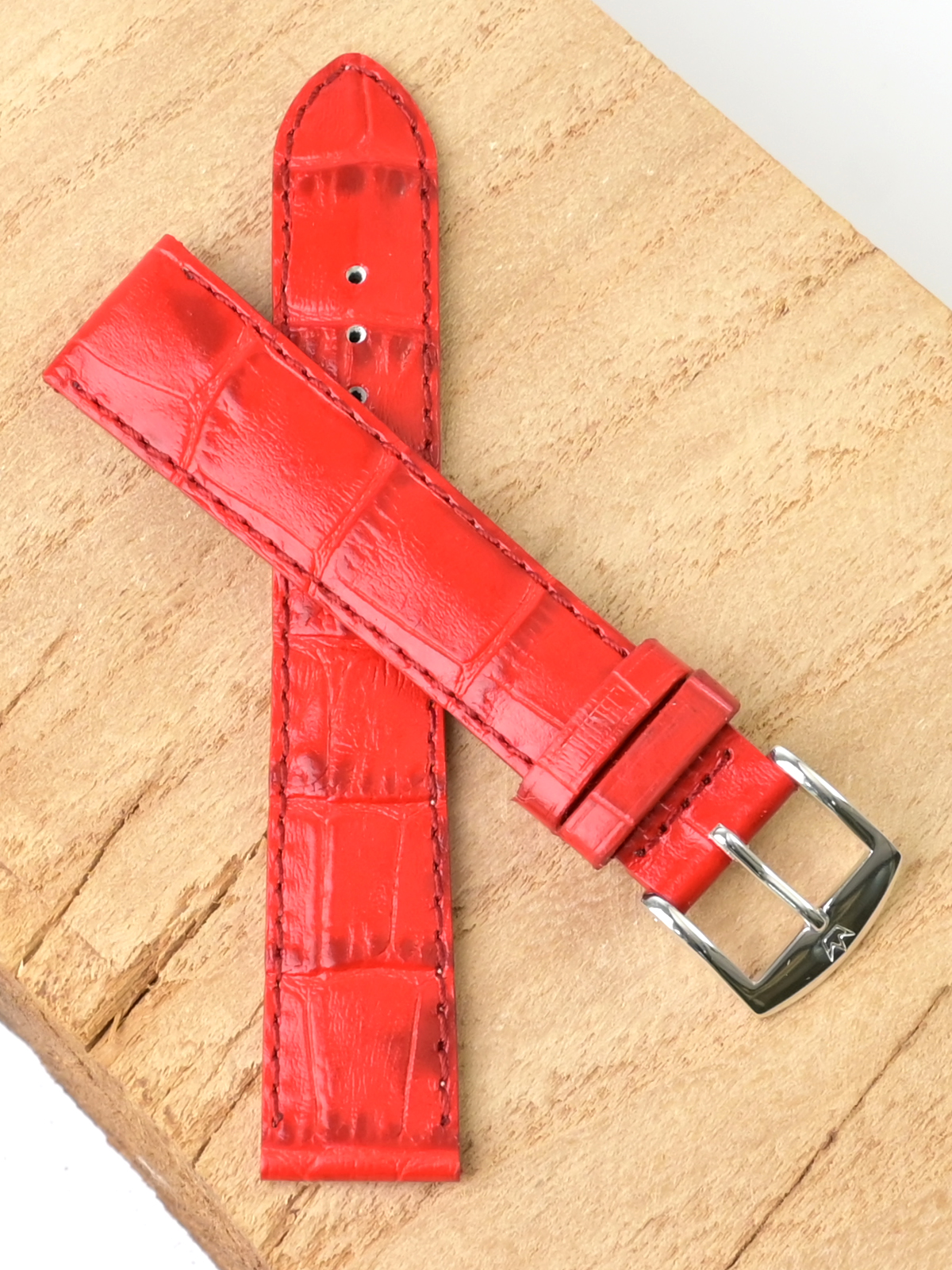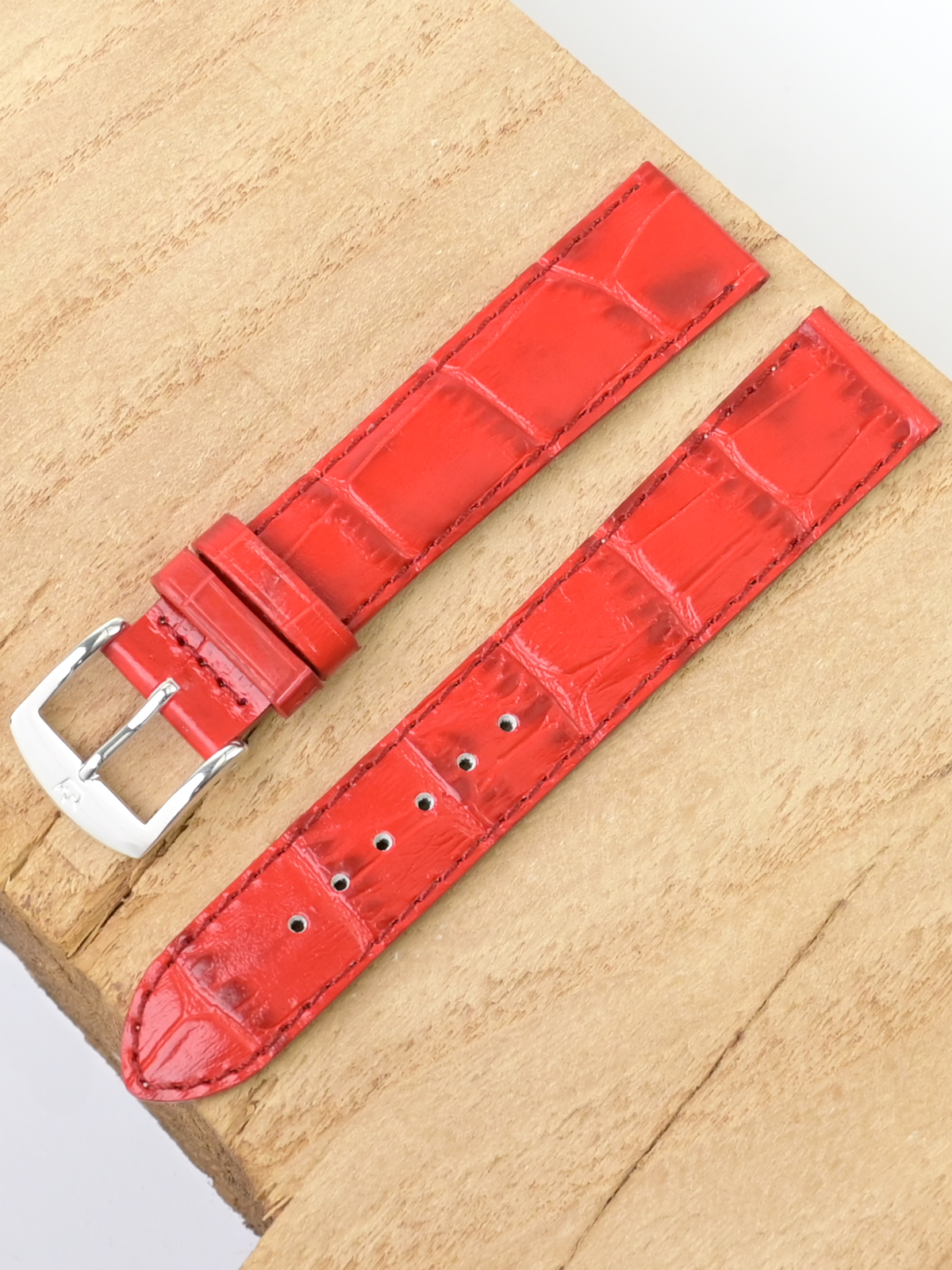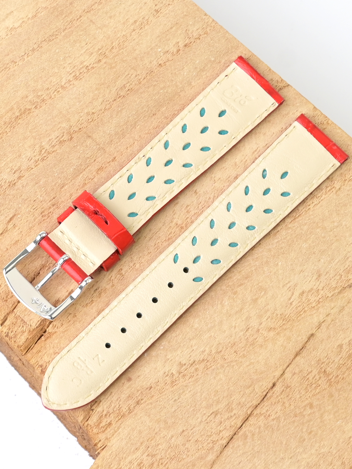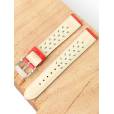 Ремешок из натуральной кожи для наручных часов. Ширина крепления: 18 мм. Ширина пряжки: 16 мм. Длина большей части: 110 мм. Длина меньшей части без застежки: 80 мм. Для более комфортного ношения внутренняя часть ремешка имеет перфорацию. Пряжка выполнены из алюминия.