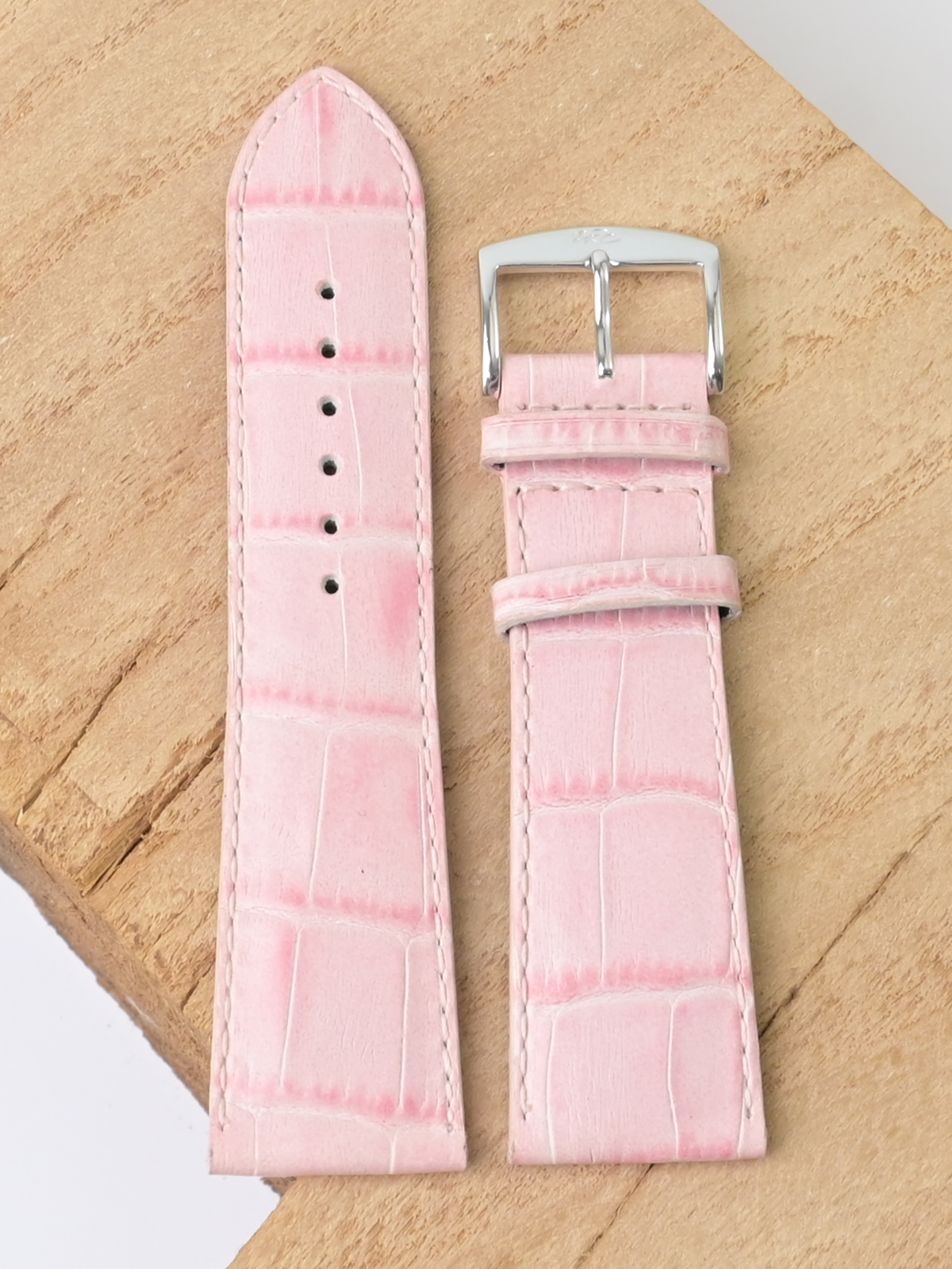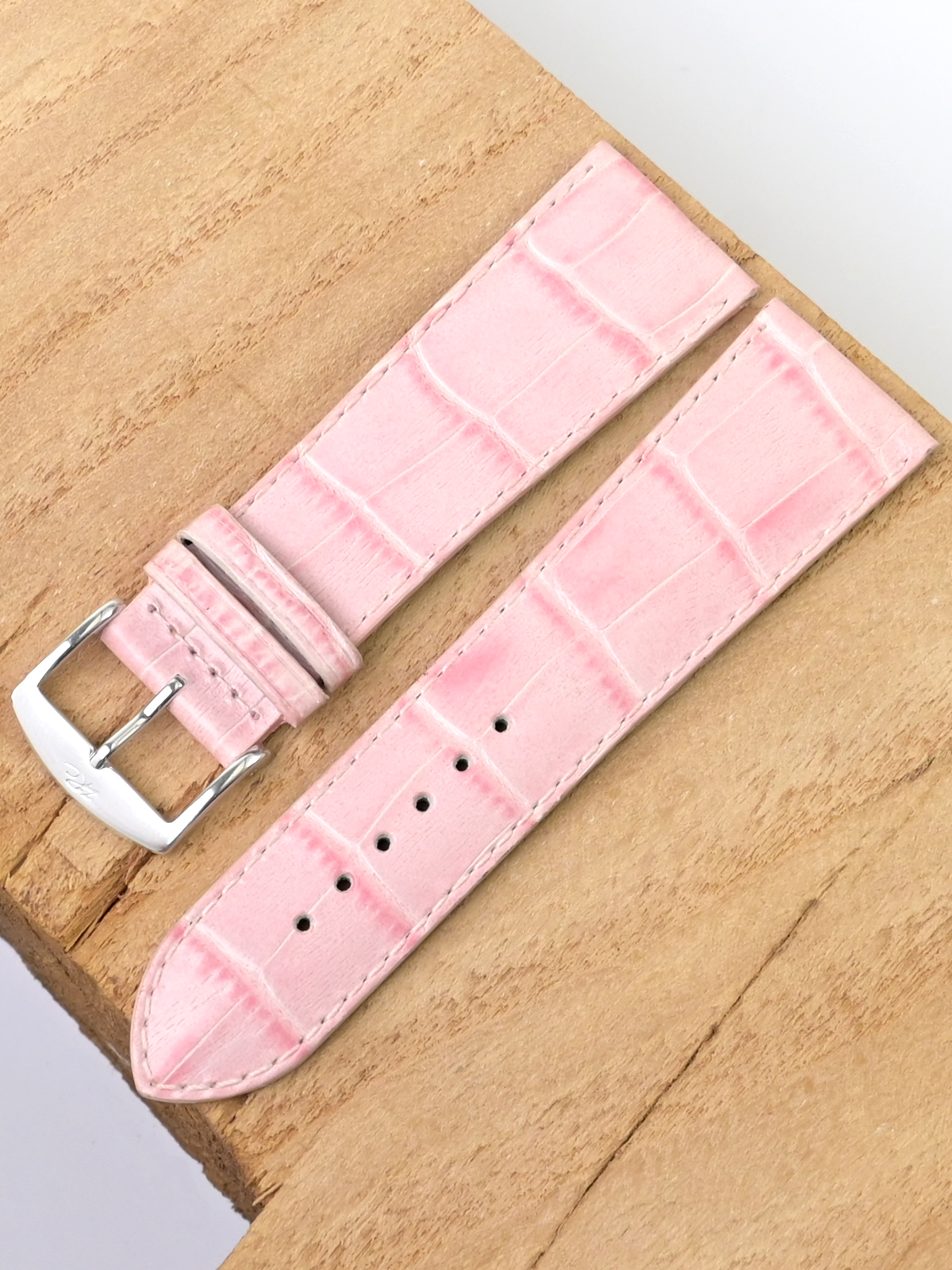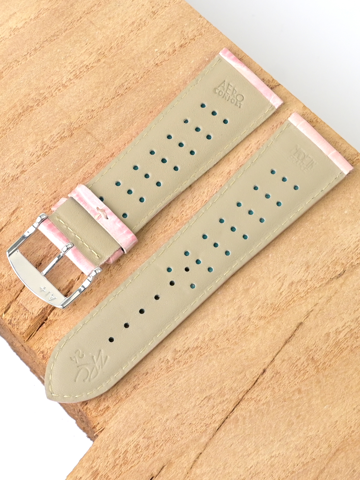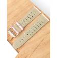 Ремешок из натуральной кожи для наручных часов. Ширина крепления: 24 мм. Ширина пряжки: 20 мм. Длина большей части: 110 мм. Длина меньшей части без застежки: 80 мм. Для более комфортного ношения внутренняя часть ремешка имеет перфорацию. Пряжка выполнена из алюминия.