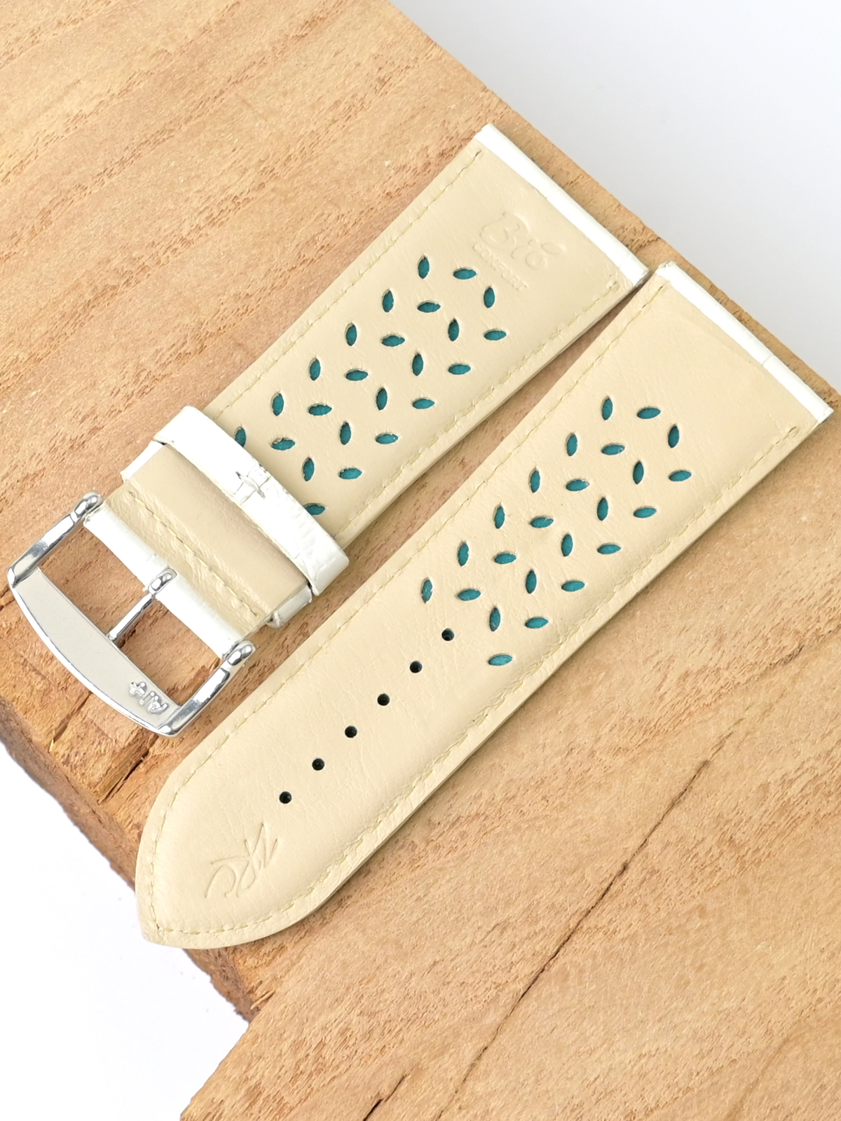 Ремешок из натуральной кожи для наручных часов. Ширина крепления: 28 мм. Ширина пряжки: 26 мм. Длина большей части: 115 мм. Длина меньшей части без застежки: 80 мм. Для более комфортного ношения внутренняя часть ремешка имеет перфорацию. Пряжка выполнены из алюминия