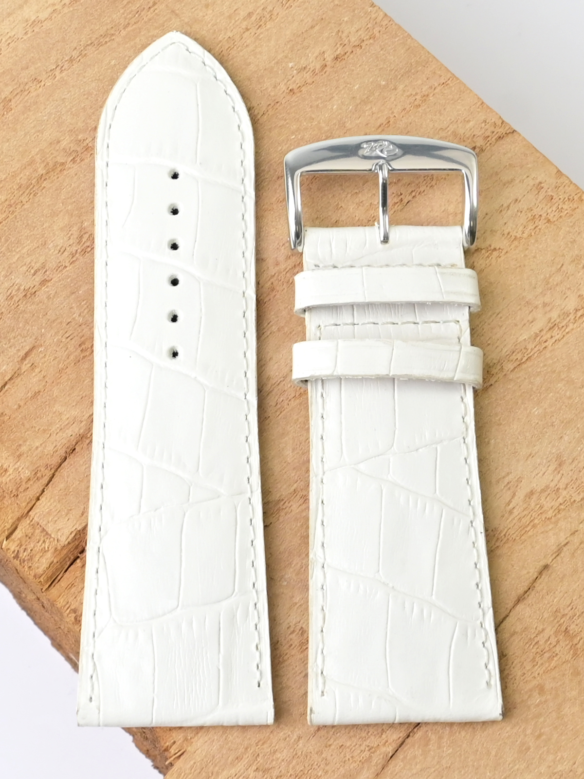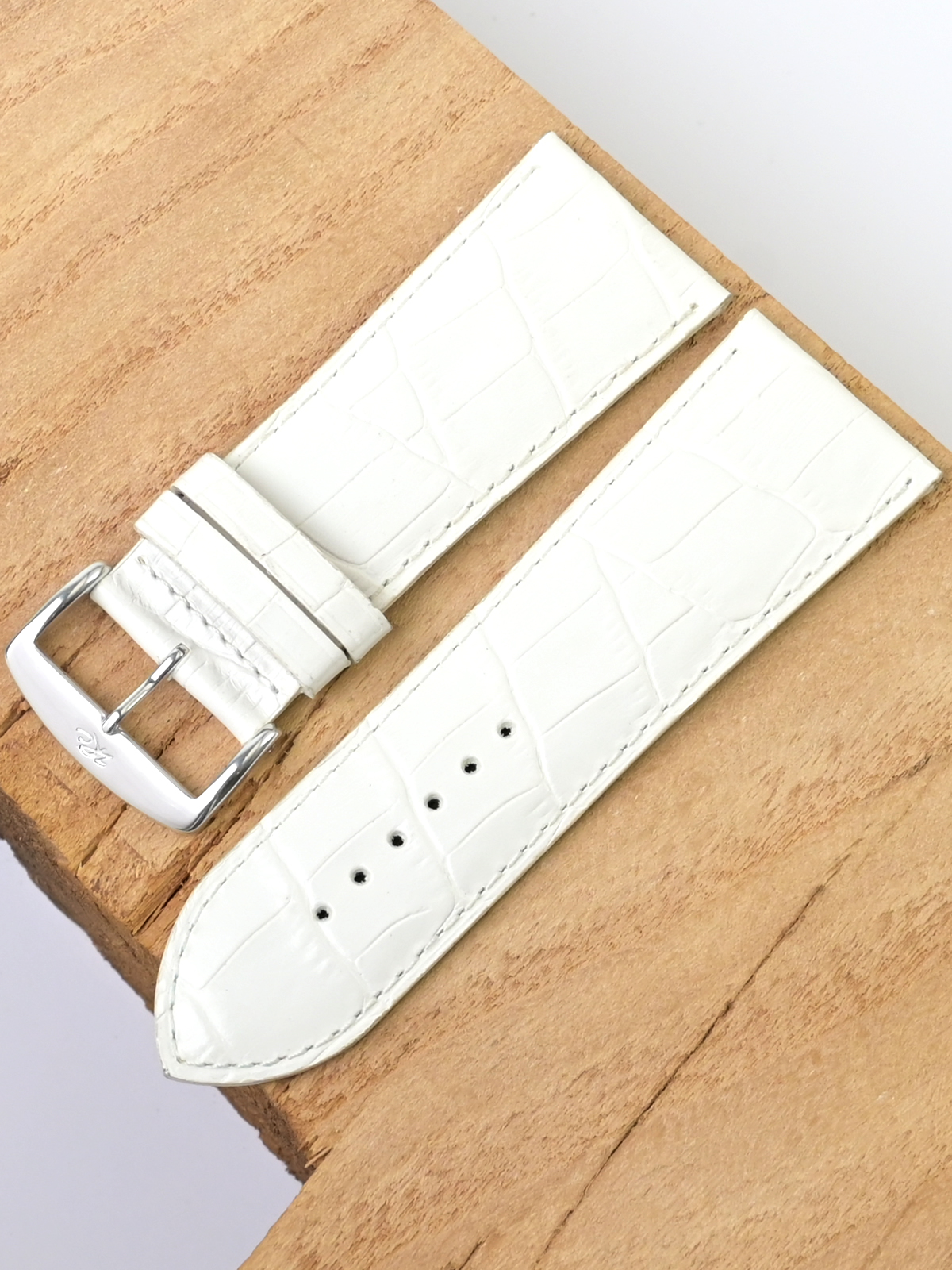 Ремешок из натуральной кожи для наручных часов. Ширина крепления: 30 мм. Ширина пряжки: 26 мм. Длина большей части: 115 мм. Длина меньшей части без застежки: 80 мм. Для более комфортного ношения внутренняя часть ремешка имеет перфорацию. Пряжка выполнены из алюминия