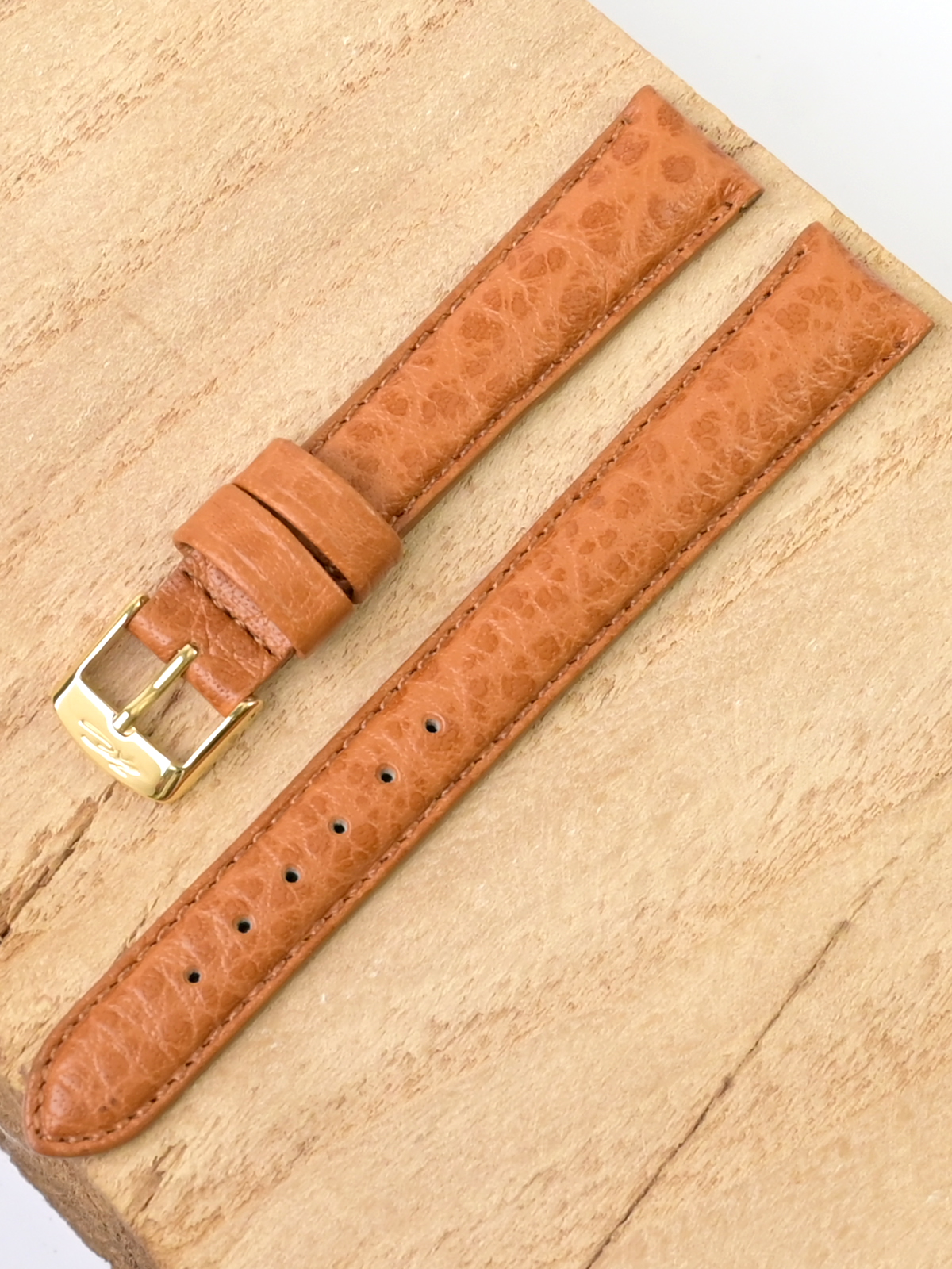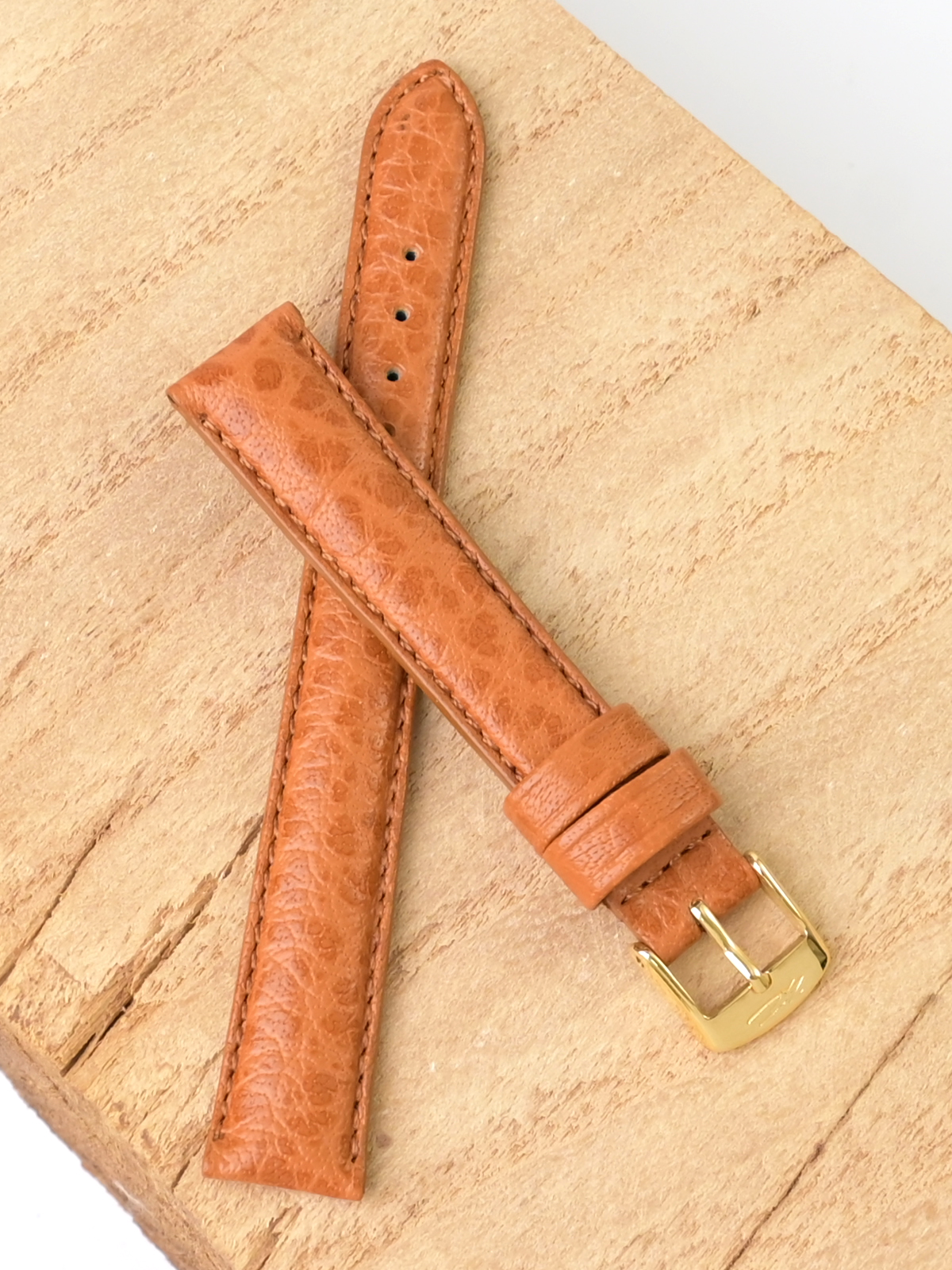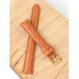 Ремешок из натуральной кожи для наручных часов. Ширина крепления: 14 мм. Ширина пряжки: 12 мм. Длина большей части: 110 мм. Длина меньшей части без застежки: 70 мм. Пряжка выполнена из нержавеющей стали с IP покрытием цвета желтого золота.