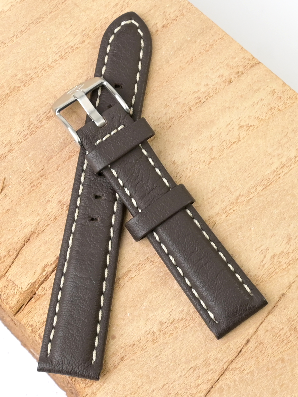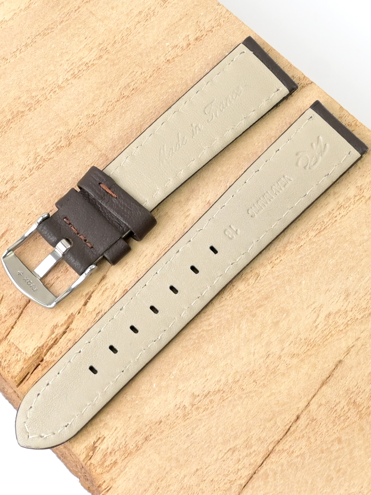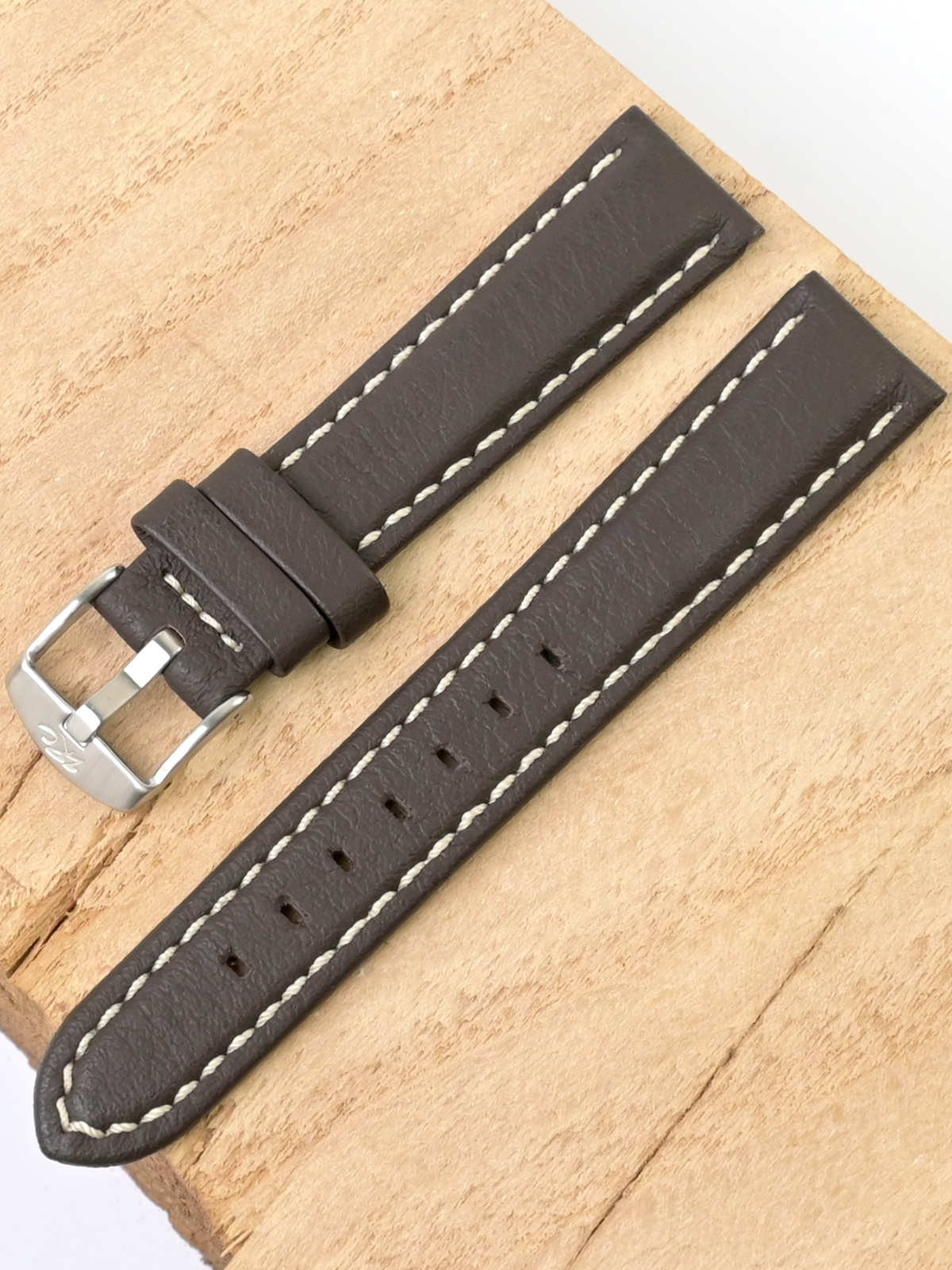 Ремешок из натуральной кожи для наручных часов. Ширина крепления: 18 мм. Ширина пряжки: 16 мм. Длина большей части: 115 мм. Длина меньшей части без застежки: 75 мм. Пряжка выполнены из полированной нержавеющей стали.