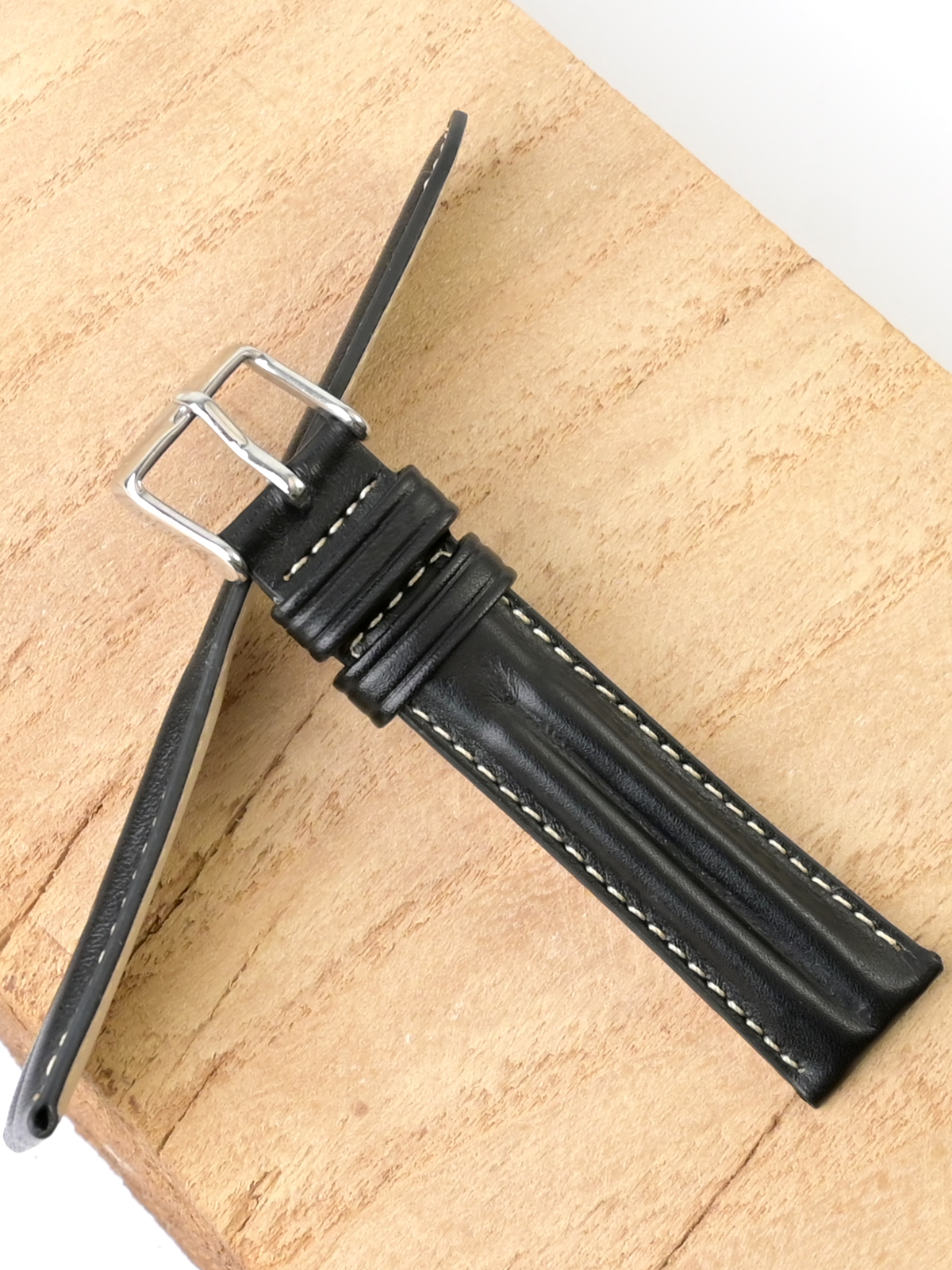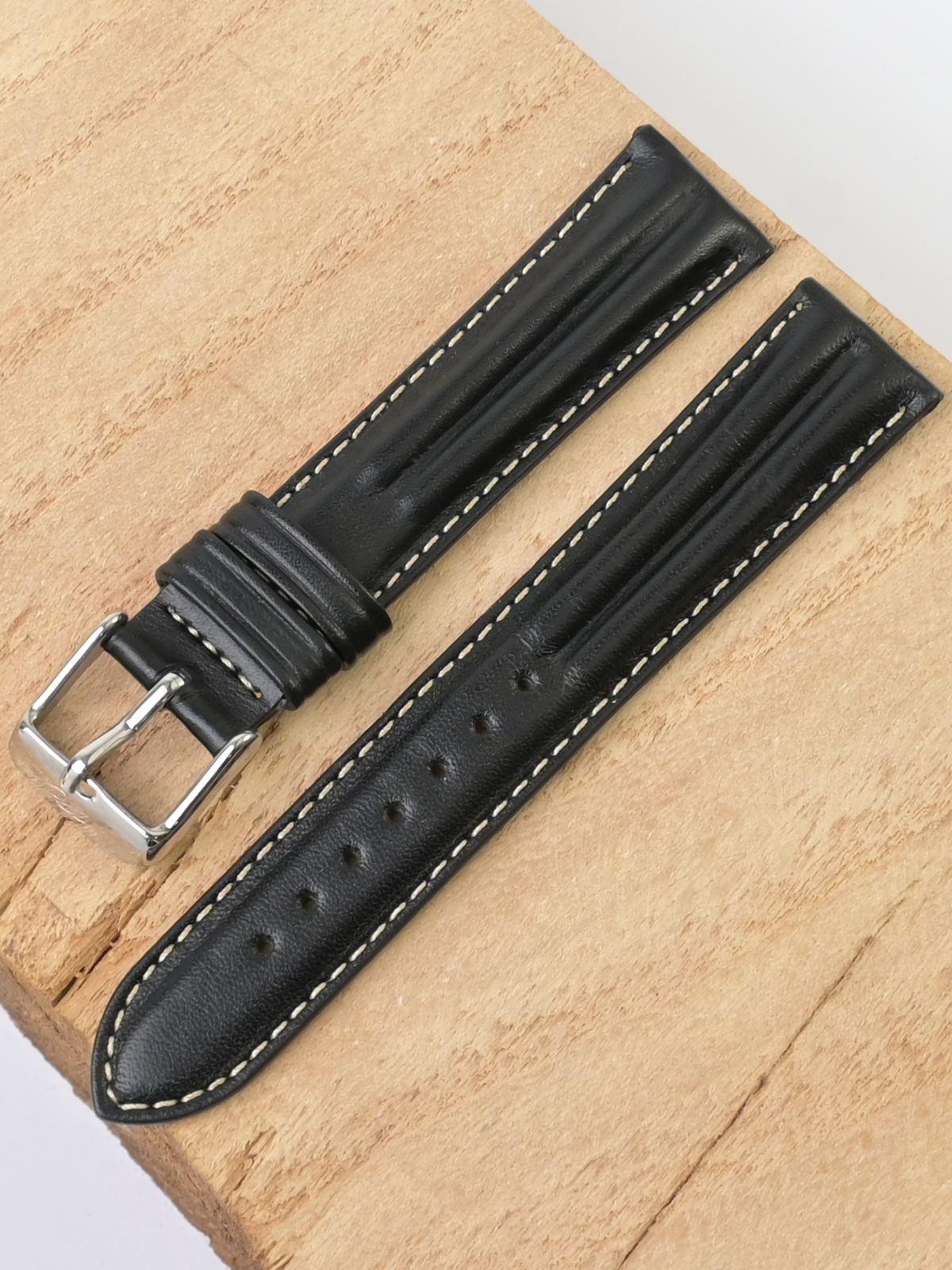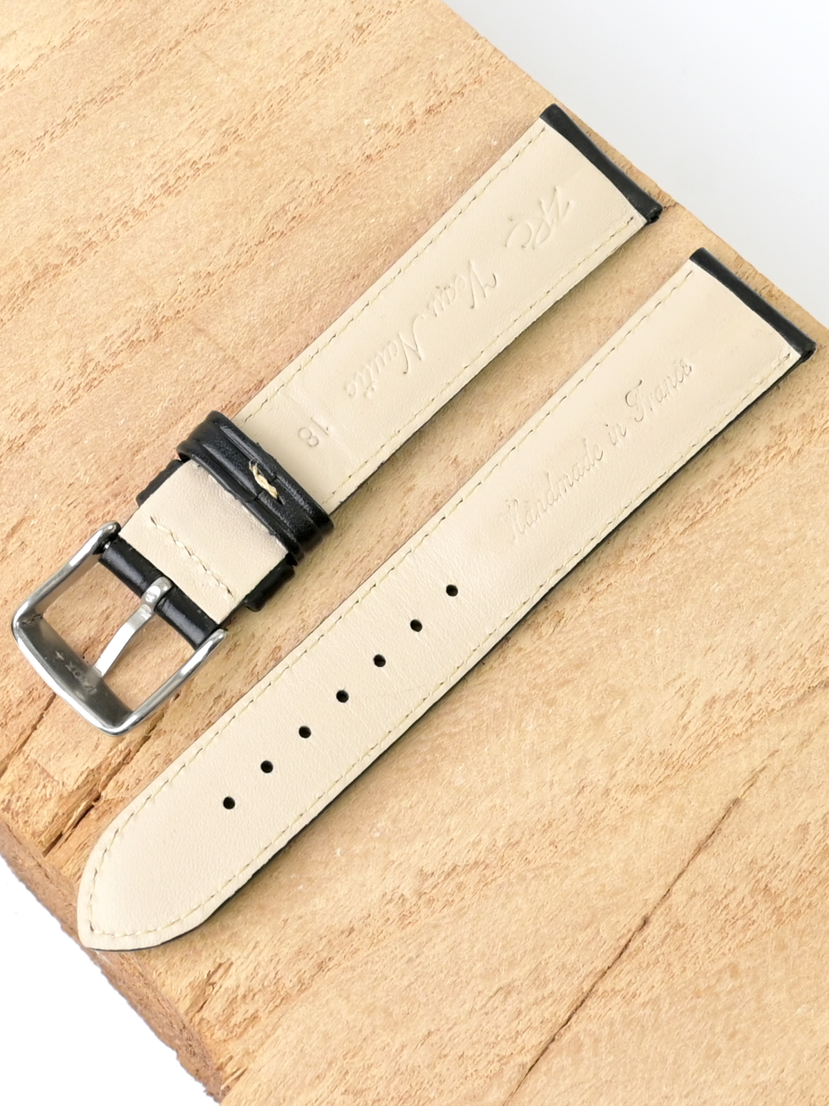 Ремешок из натуральной кожи для наручных часов. Ширина крепления: 18 мм. Ширина пряжки: 16 мм. Длина большей части: 110 мм. Длина меньшей части без застежки: 80 мм. Пряжка выполнены из полированной нержавеющей стали.
