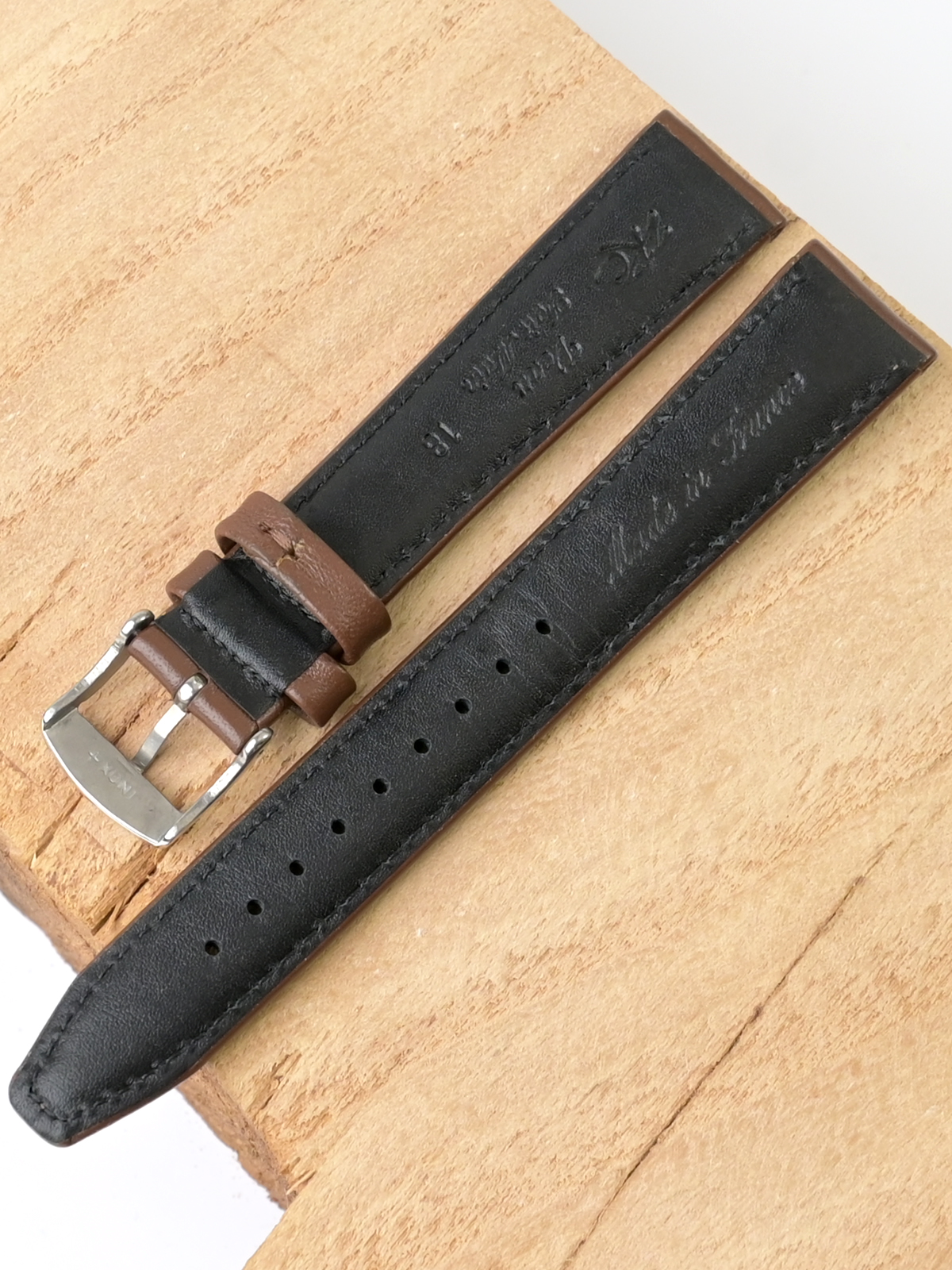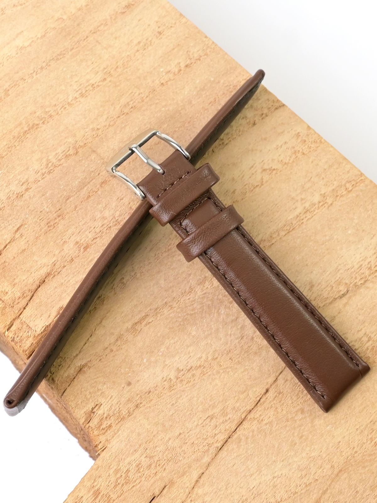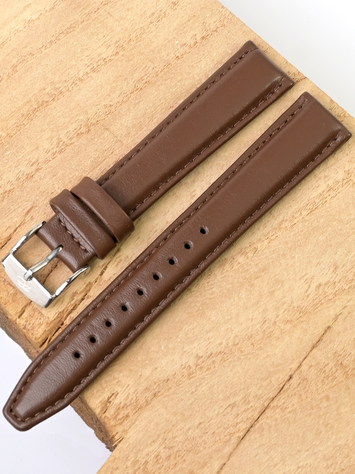 Ремешок из натуральной кожи для наручных часов. Ширина крепления: 18 мм. Ширина пряжки: 16 мм. Длина большей части: 125 мм. Длина меньшей части без застежки: 85 мм. Пряжка выполнена из нержавеющей стали.