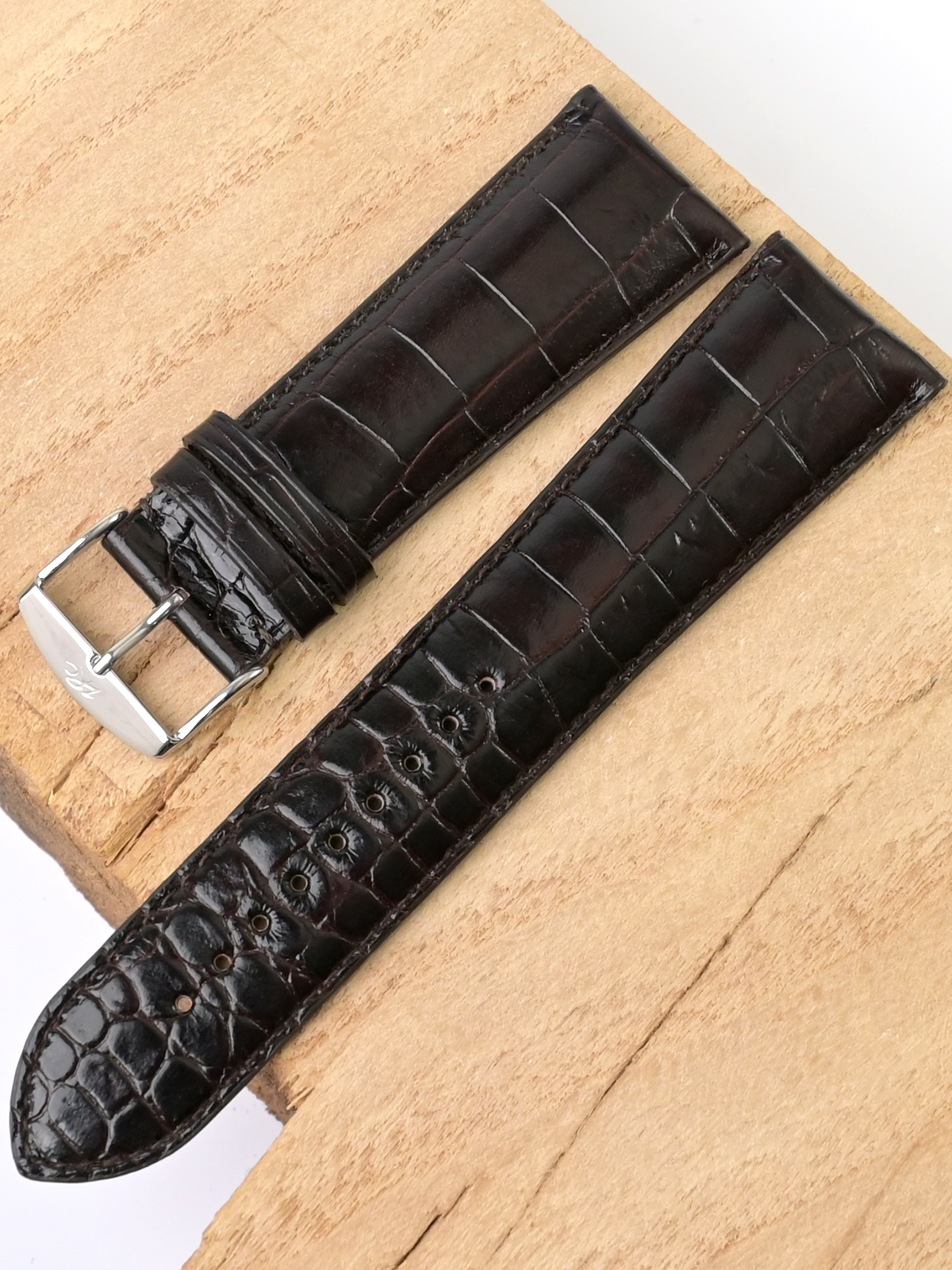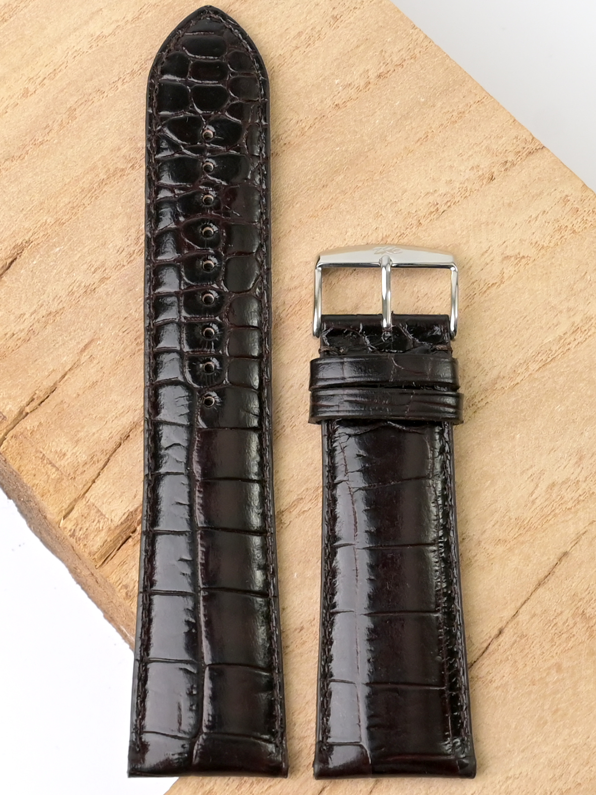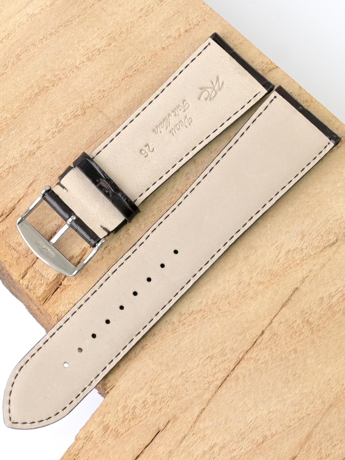 Ремешок из натуральной кожи для наручных часов. Ширина крепления: 26 мм. Ширина пряжки: 22 мм. Длина большей части: 135 мм. Длина меньшей части без застежки: 80 мм. Пряжка выполнены из нержавеющей стали.