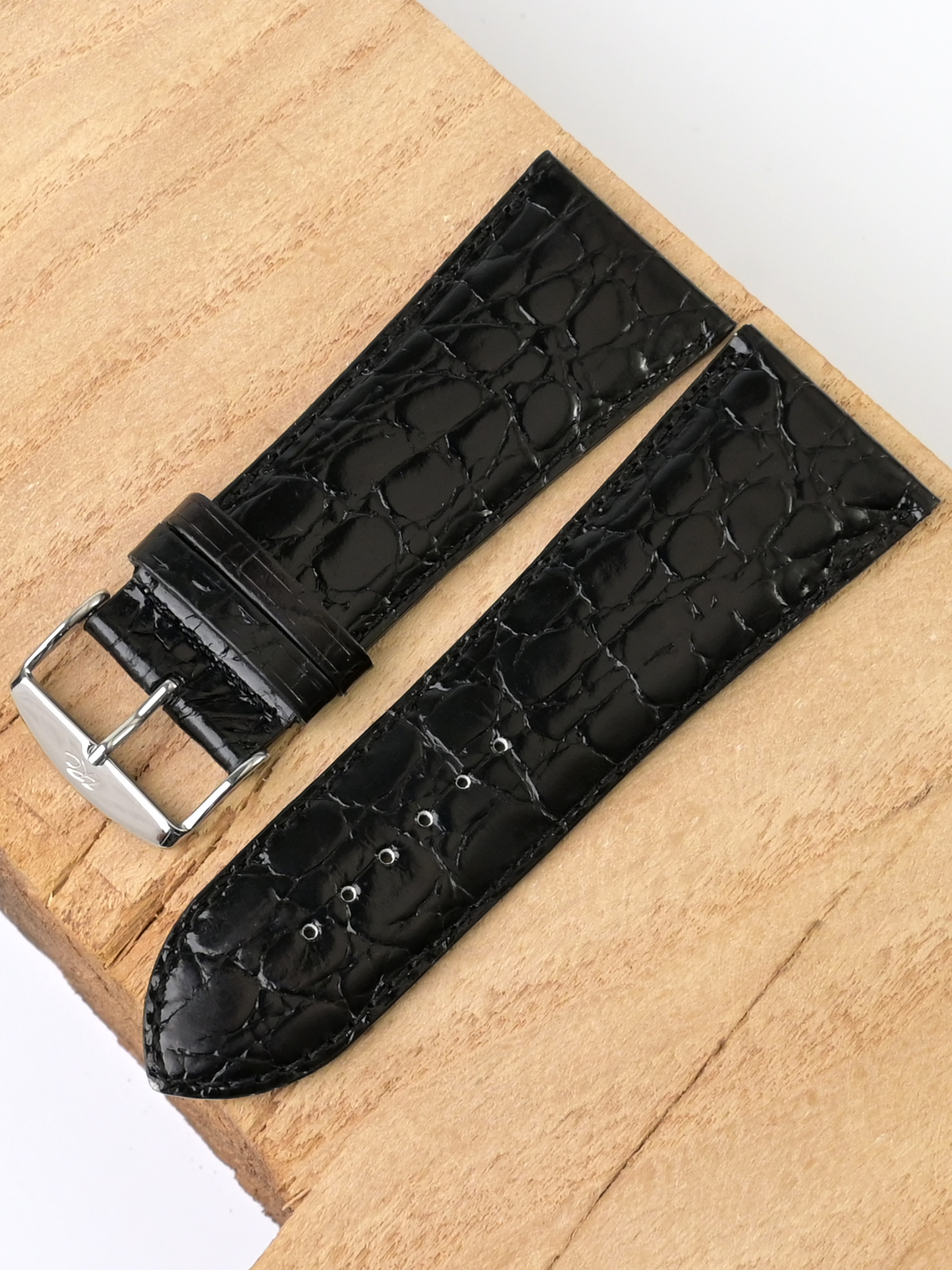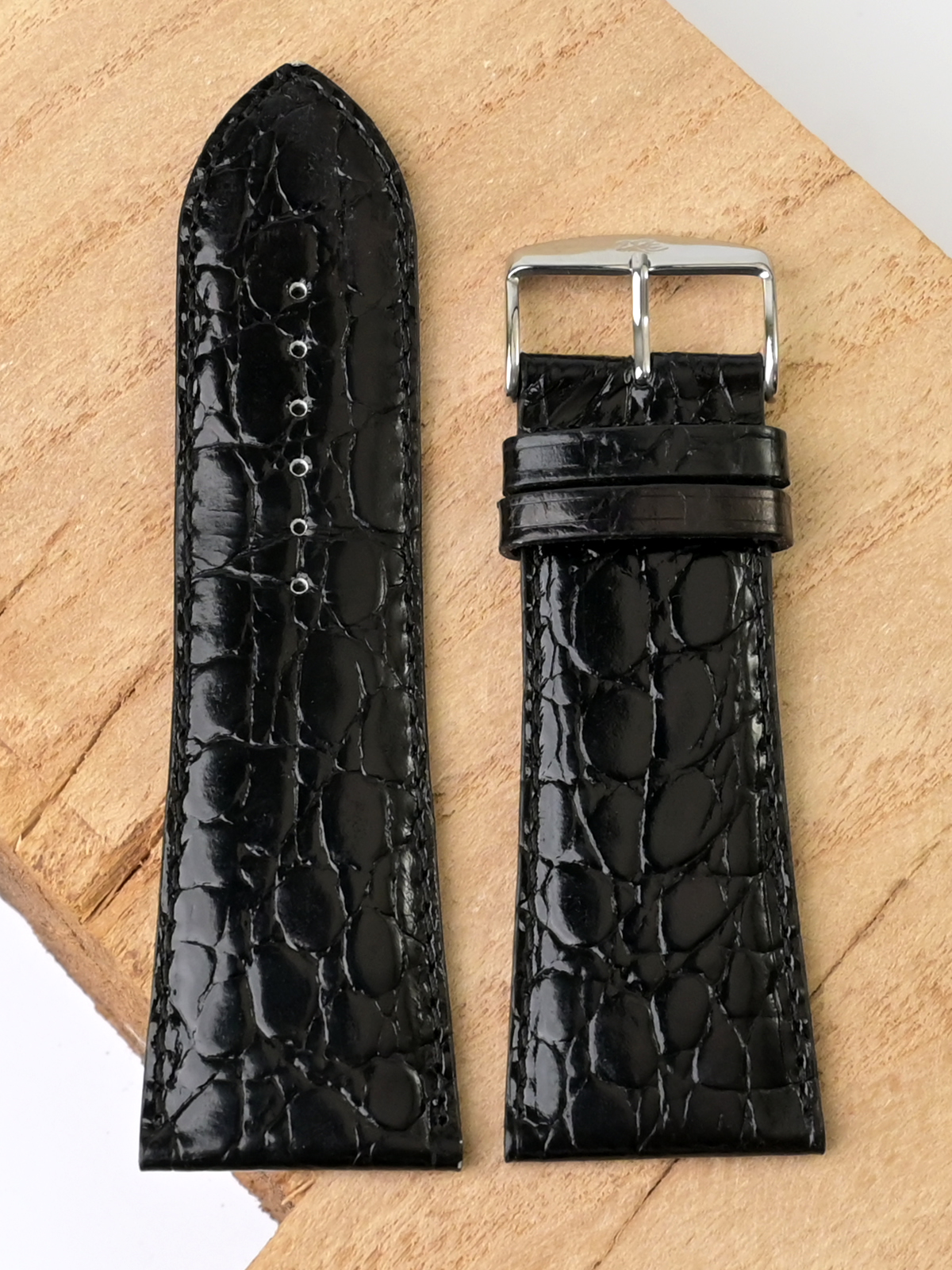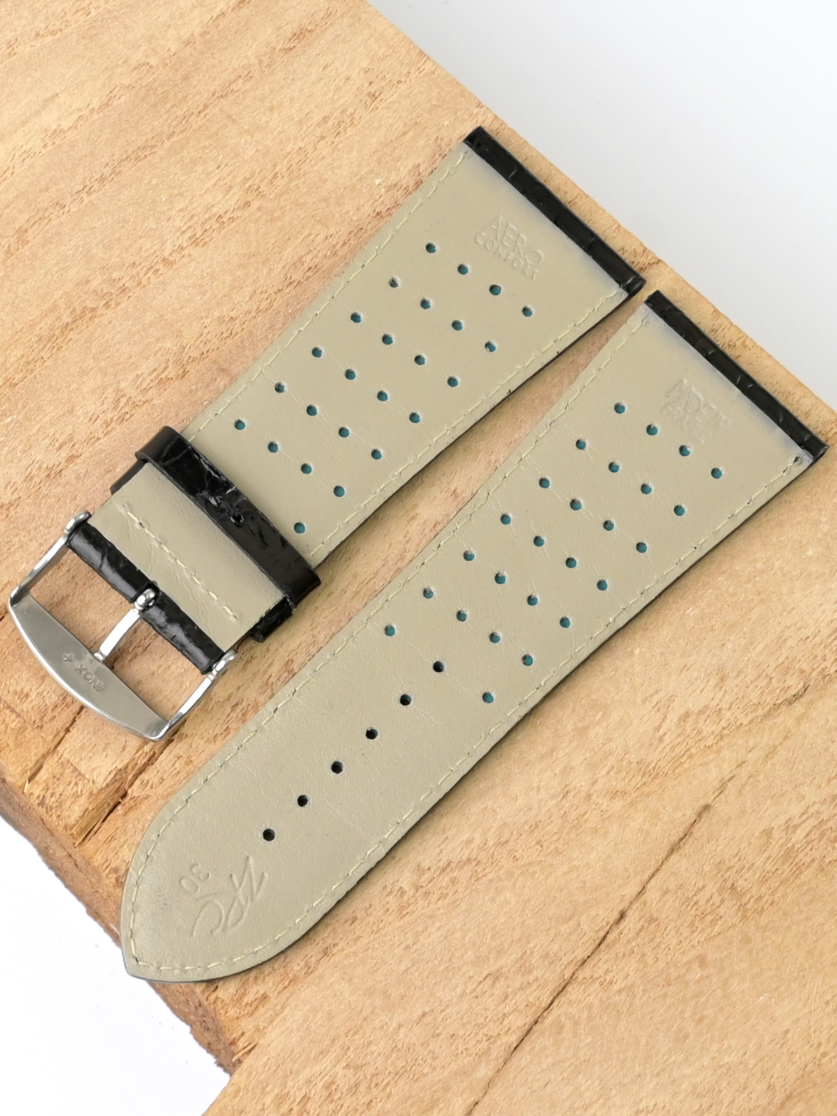 Ремешок из натуральной кожи для наручных часов. Ширина крепления: 30 мм. Ширина пряжки: 24 мм. Длина большей части: 110 мм. Длина меньшей части без застежки: 80 мм. Для более комфортного ношения внутренняя часть ремешка имеет перфорацию. Пряжка выполнена из нержавеющей стали.