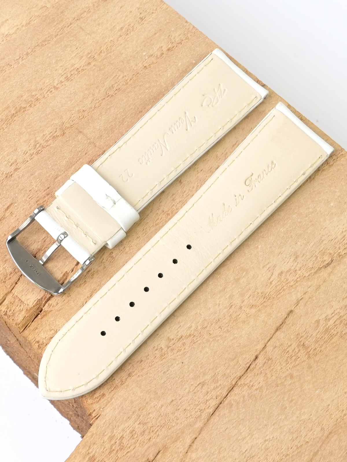 Ремешок из натуральной кожи для наручных часов. Ширина крепления: 22 мм. Ширина пряжки: 20 мм. Длина большей части: 115 мм. Длина меньшей части без застежки: 80 мм. Пряжка выполнена из нержавеющей стали.