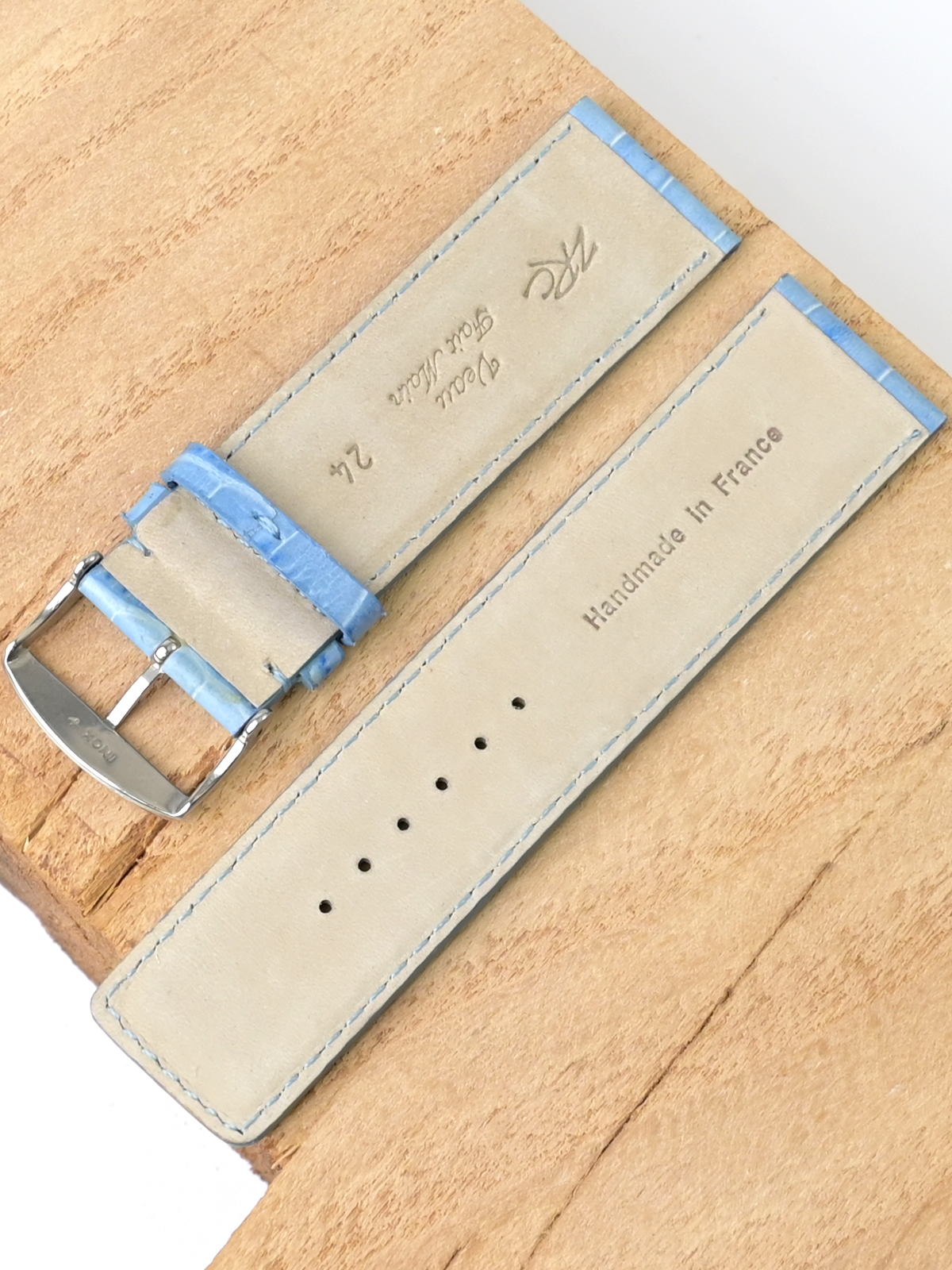 Ремешок из натуральной кожи для наручных часов. Ширина крепления: 24 мм. Ширина пряжки: 24 мм. Длина большей части: 110 мм. Длина меньшей части без застежки: 80 мм. Пряжка выполнена из нержавеющей стали.
