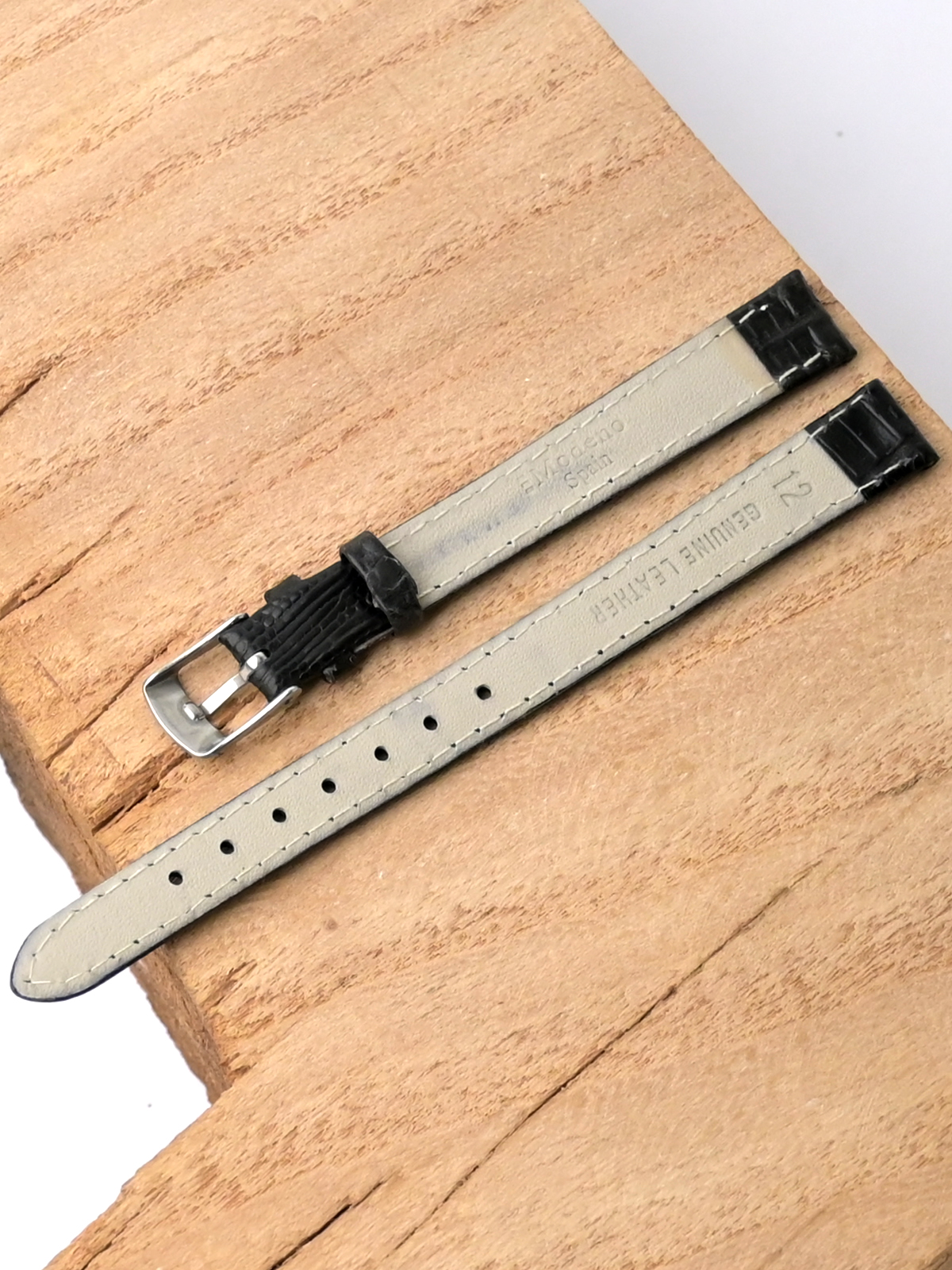 Ремешок Modeno для наручных часов, изготовленный из высококачественной натуральной кожи. Ширина крепления: 12 мм. Ширина пряжки: 10 мм. Длина большей части: 125 мм. Длина меньшей части без застежки: 80 мм. Пряжка из нержавеющей стали.